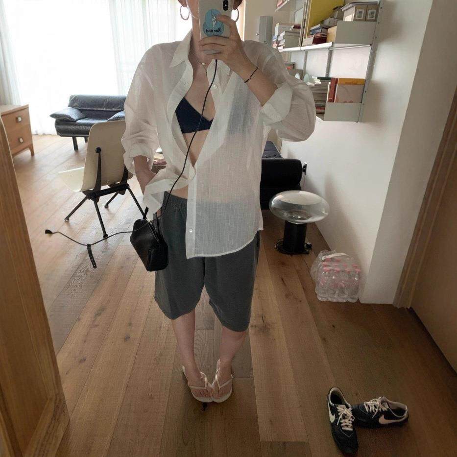 📚 【现货】GROVE EDGE韩国八奶条纹衬衫薄韩系女装宽松防晒长袖衬衣