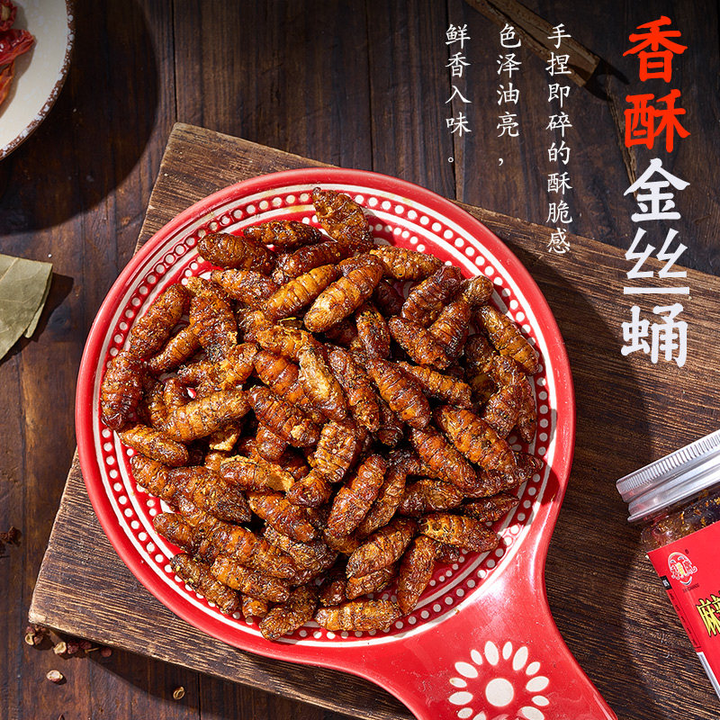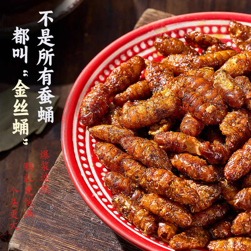 📚 淄博八大局零食金丝蚕蛹山东特产蚕蛹蒜蓉烧烤味油炸酥脆香酥蚕蛹