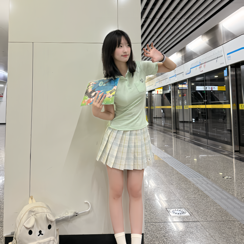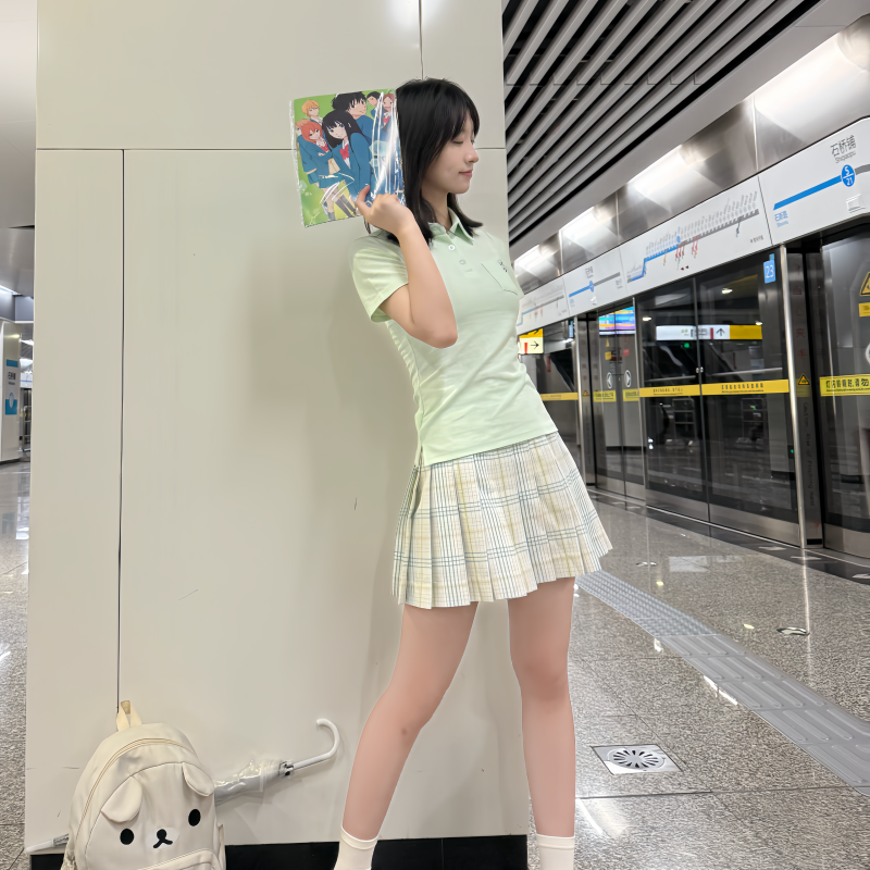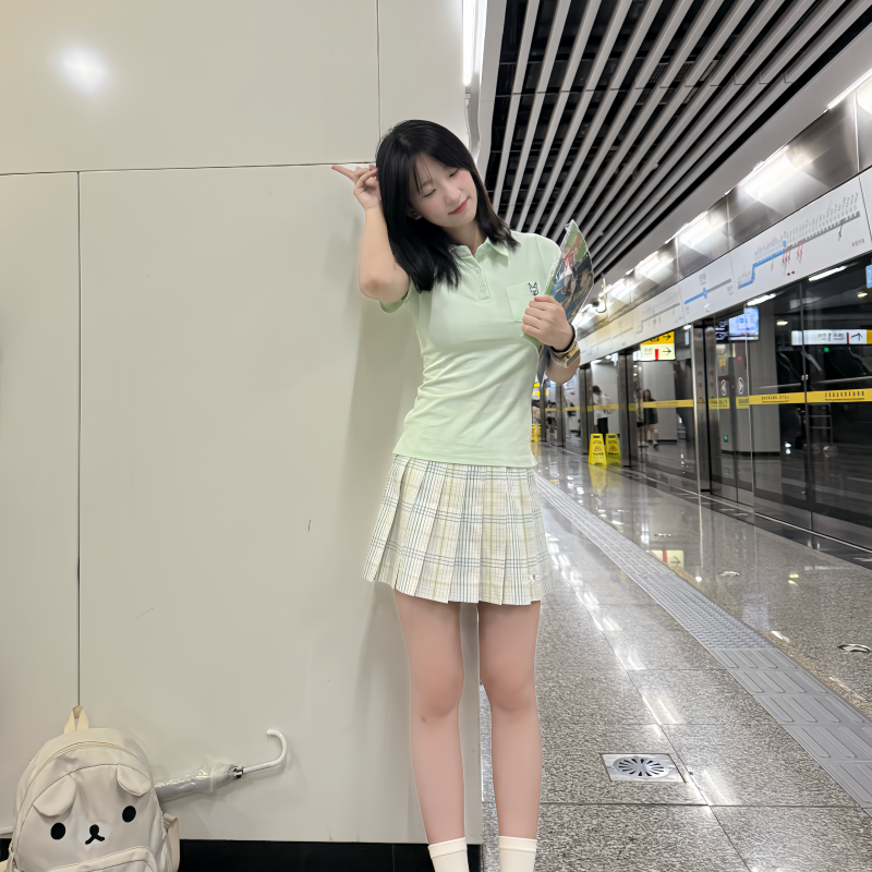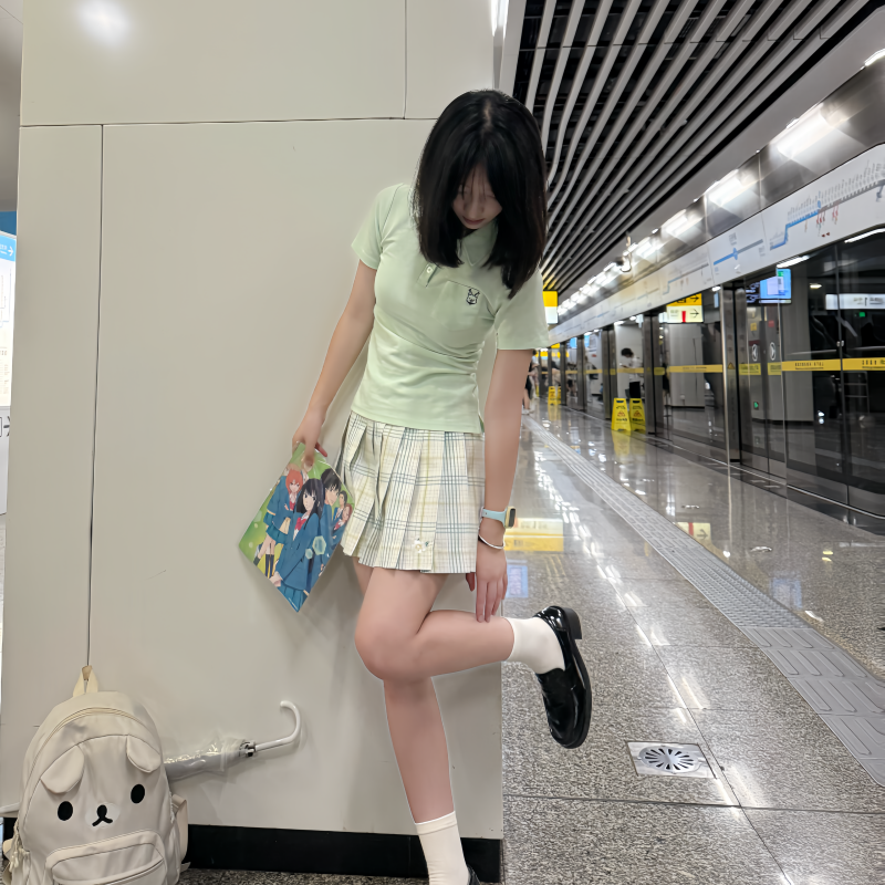📚 川野栗【梨花雪】白绿色格裙原创jk学生格裙百褶裙学院短裙半身裙