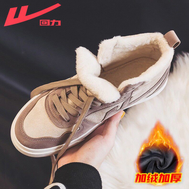 📚 回力飞跃高帮帆布鞋女鞋秋冬季新款经典百搭原创二棉鞋加绒冬鞋子