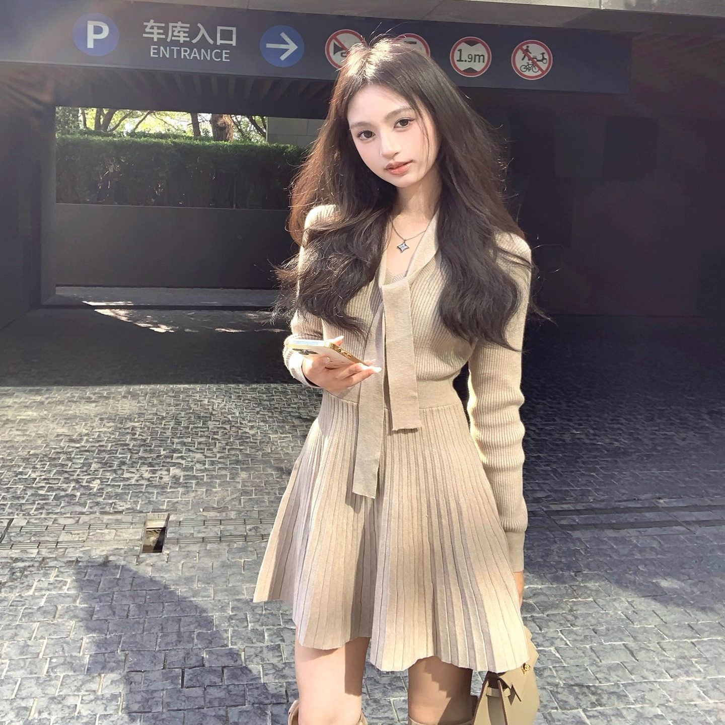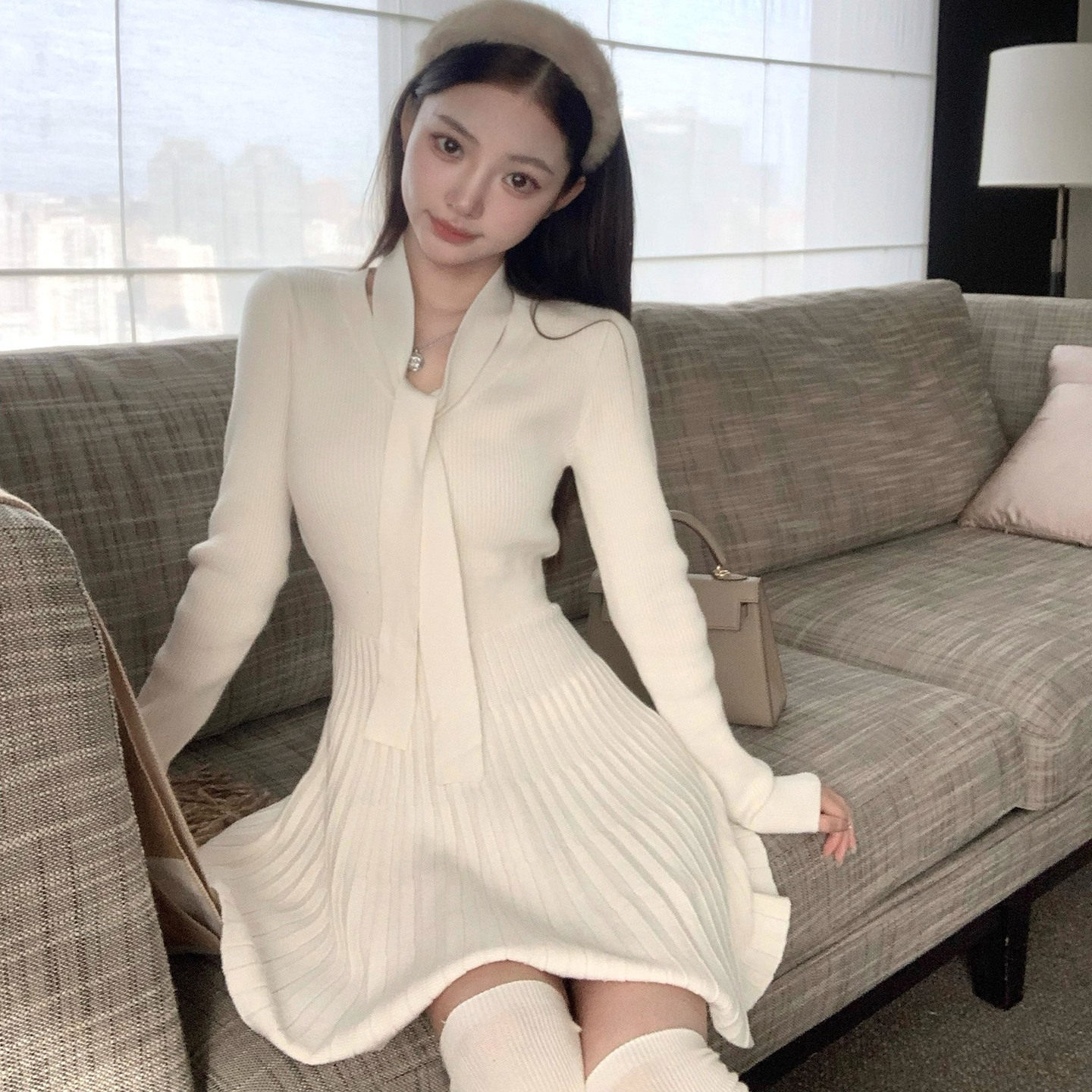 📚 O女家温与柔/气质少女感系带V领修身连衣裙富家千金miu系穿搭秋冬