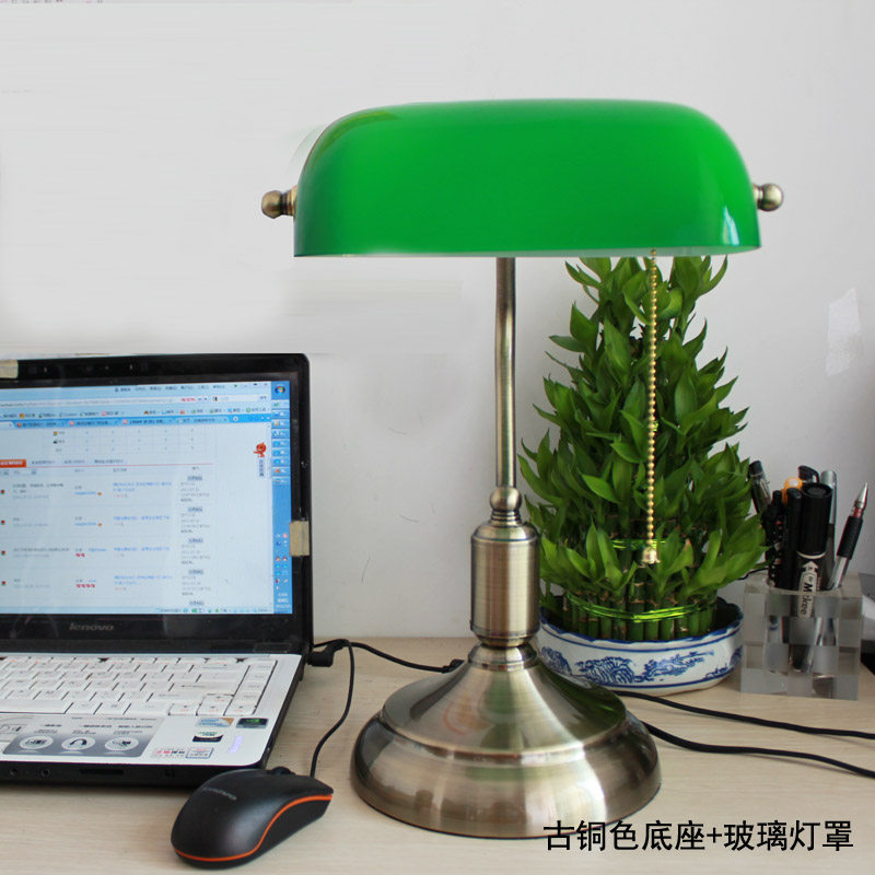 📚 充电怀旧民国老上海书房办公蒋介石银行灯美式复古绿玻璃床头台灯