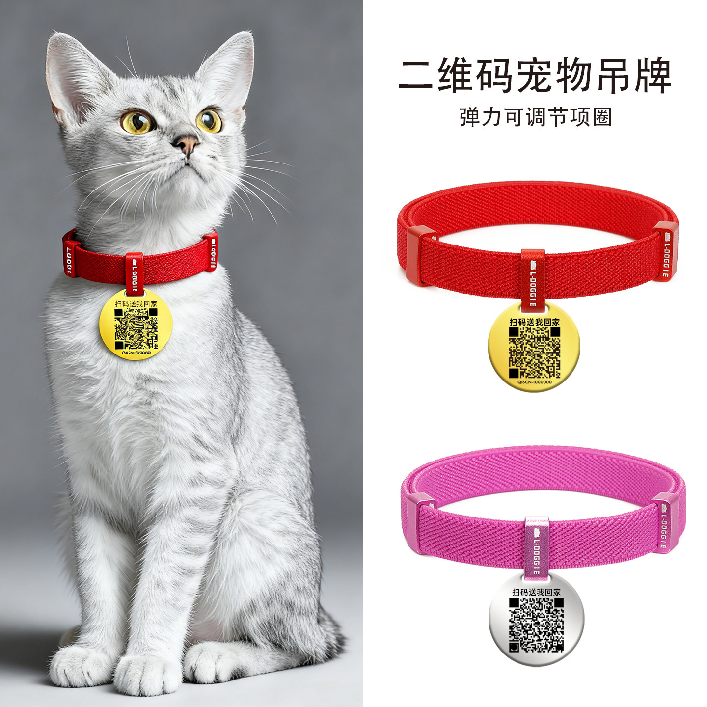 📚 猫咪项圈定做防丢失二维码猫牌铃铛项链宠物身份防窒息脖圈可调节
