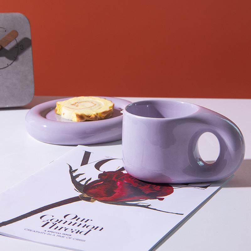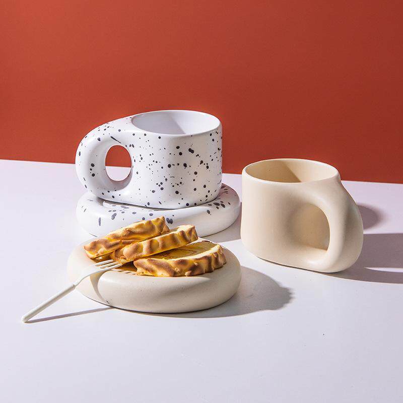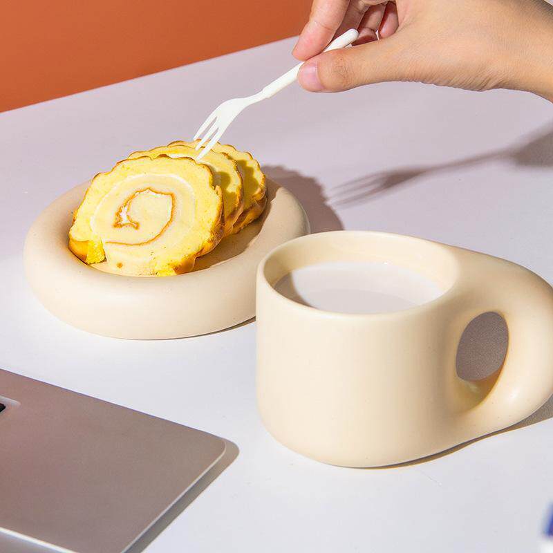 📚 北欧简约ins陶瓷马克杯胖胖手柄办公室咖啡杯套装西餐餐盘甜品盘