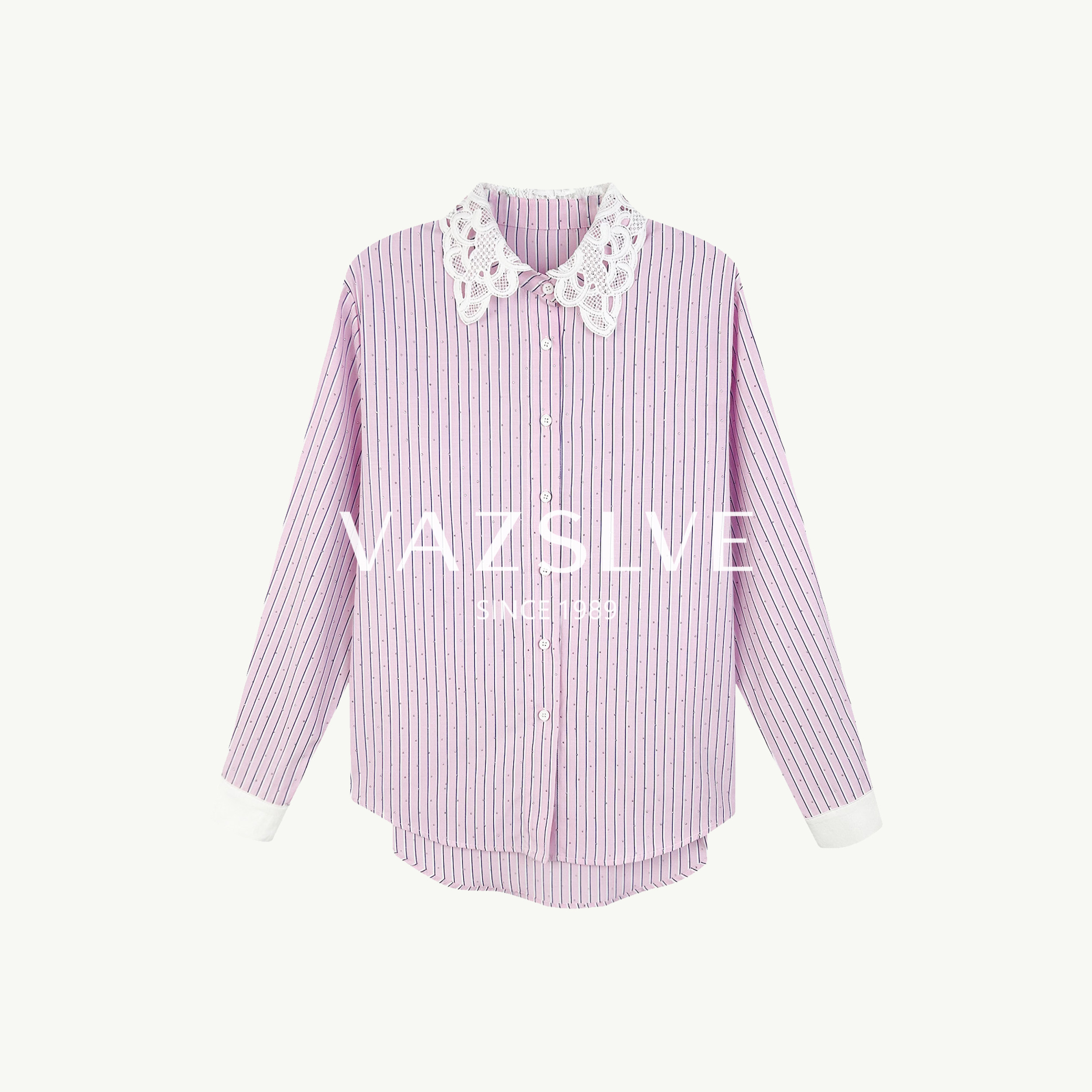 📚 【VAZSLVE/全新奢品】捡漏 时尚气质蕾丝领条纹烫钻衬衫361008