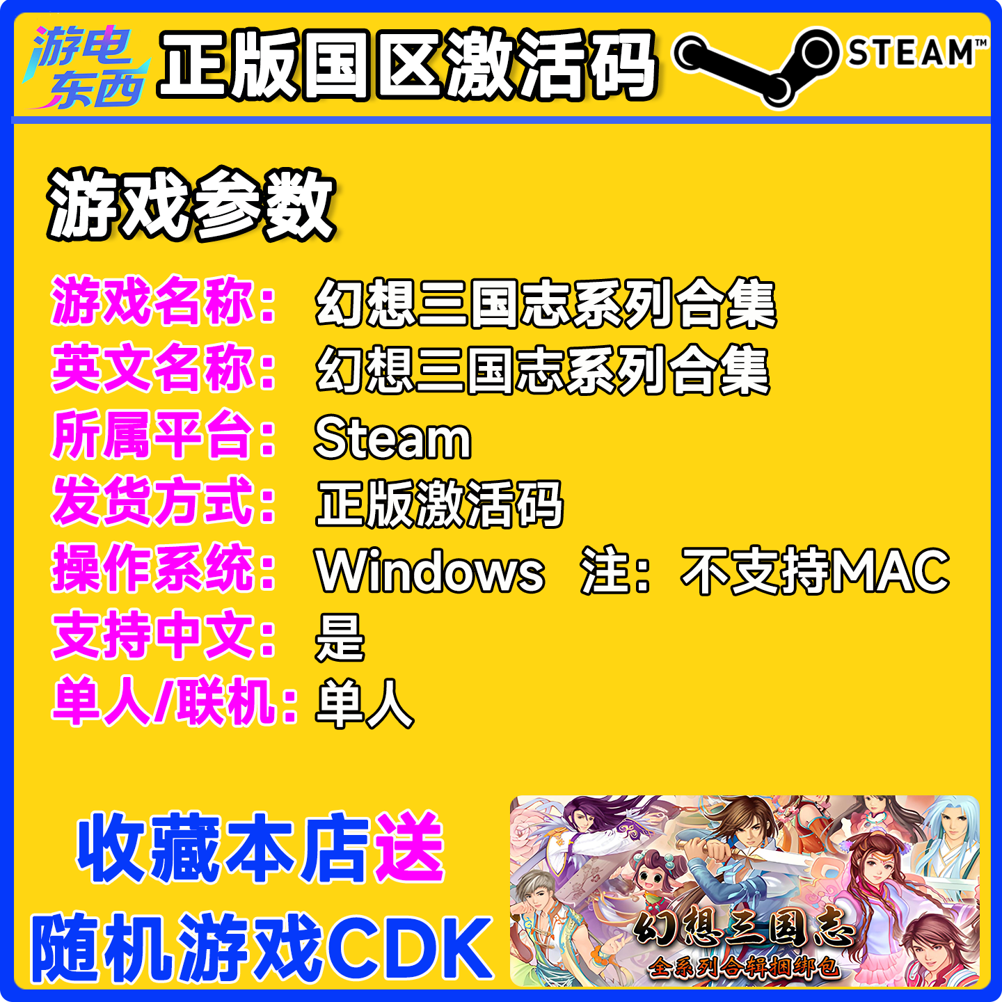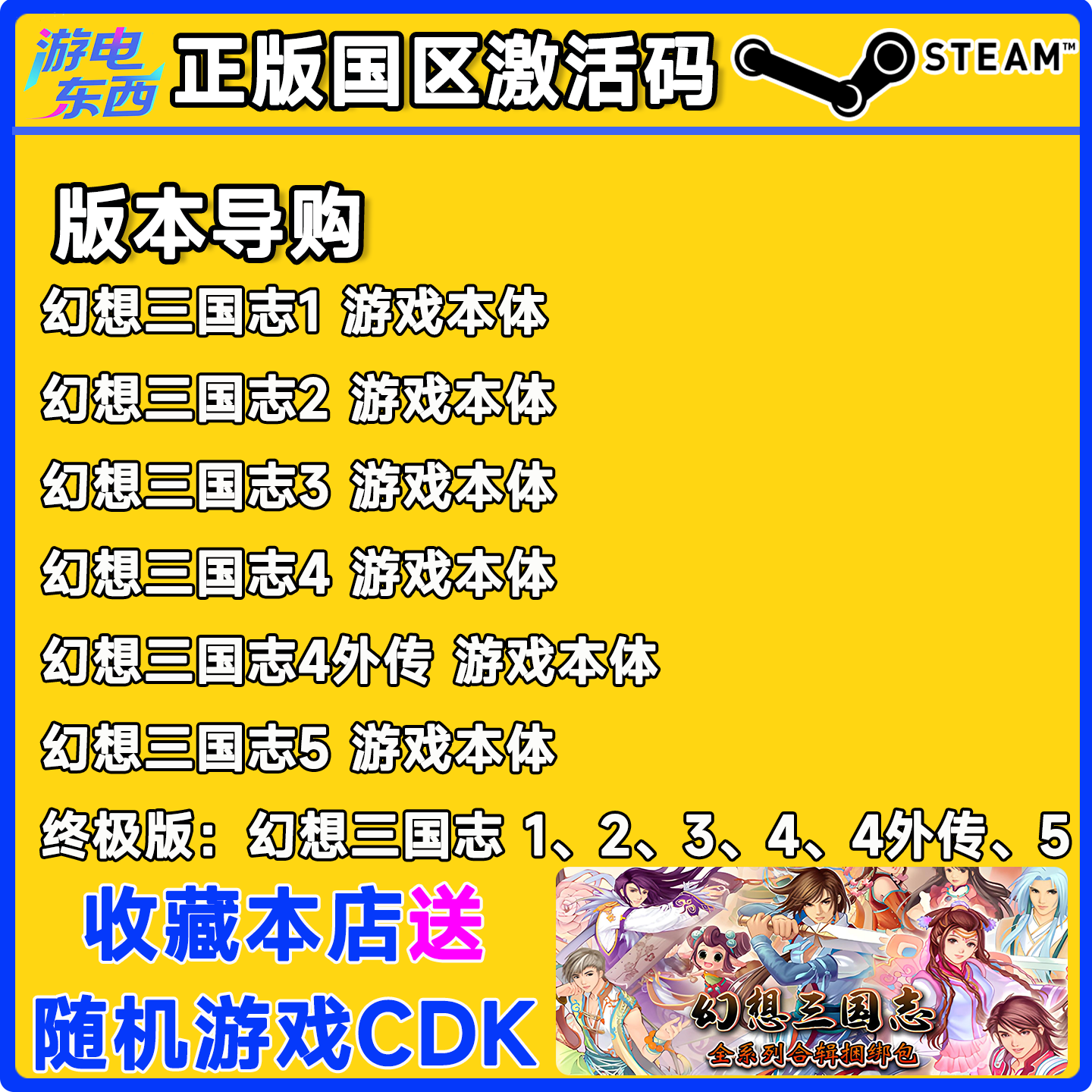 📚 steam正版游戏 幻想三国志1、2、3、4外传、5 系列合集国区激活码