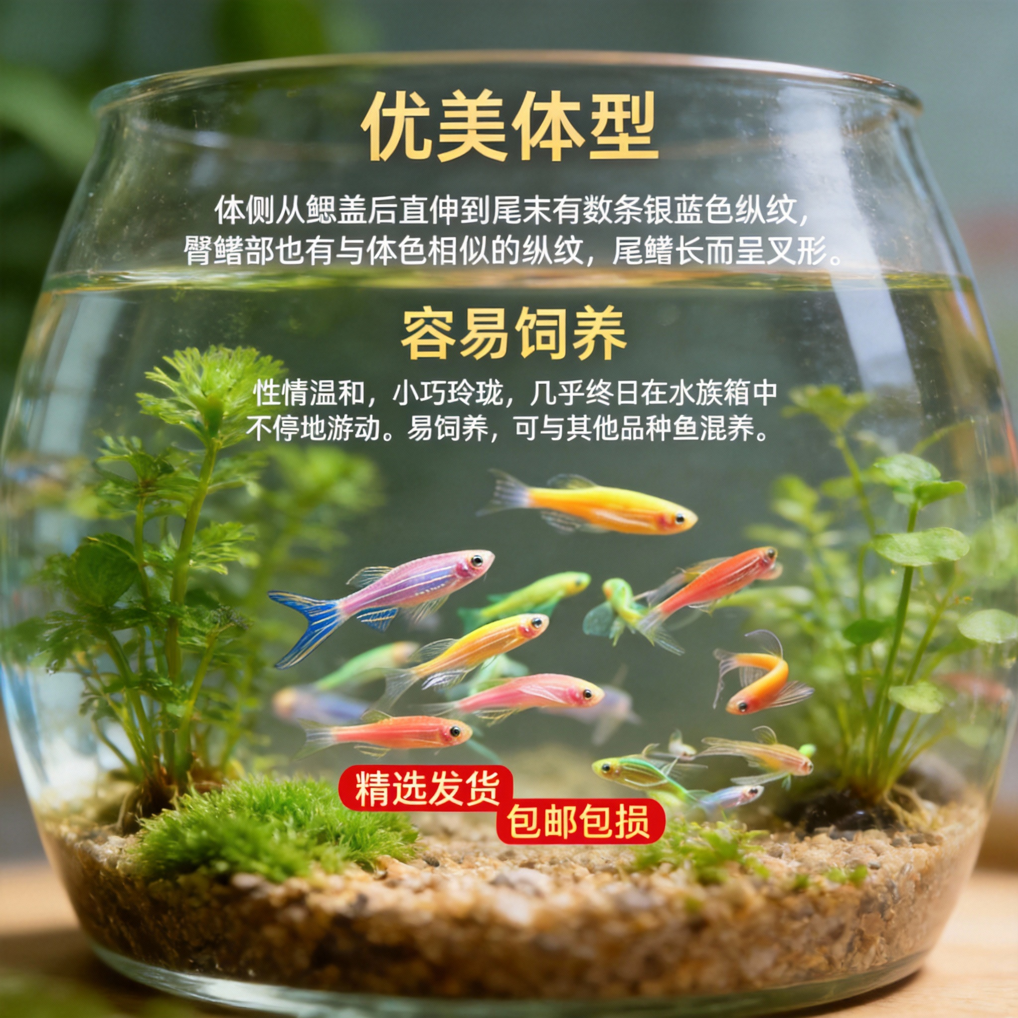 📚 热带观赏鱼红蓝斑马鱼小型金鱼苗观赏鱼蝶翼精品孔雀红绿灯科活体