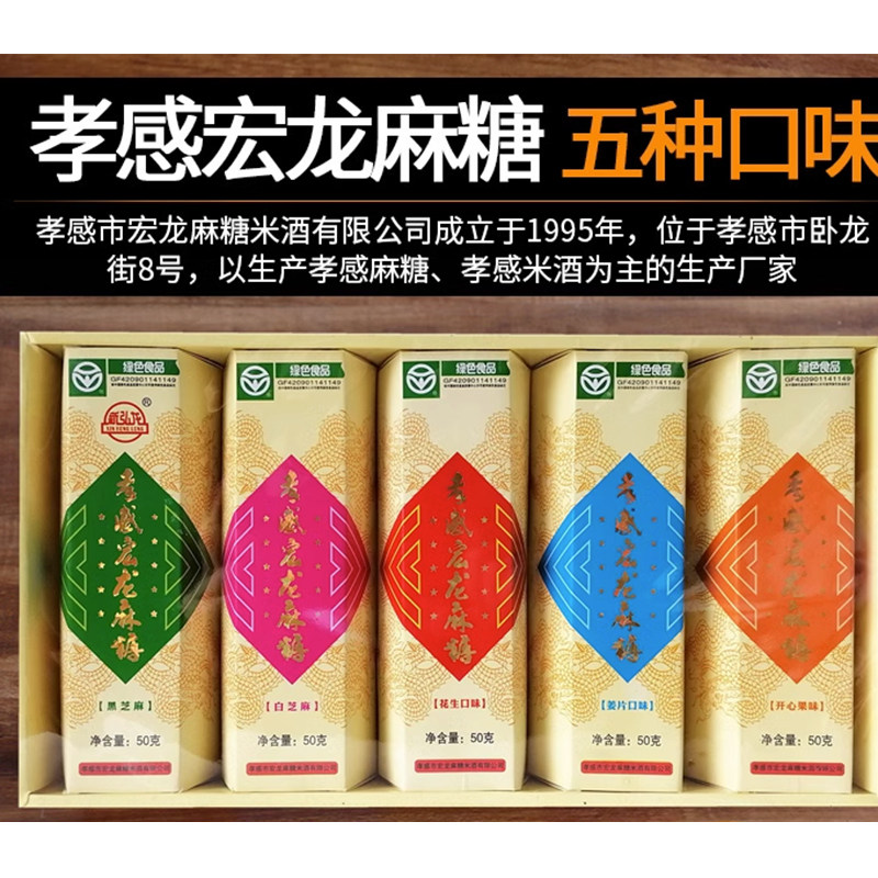 📚 弘龙孝感麻糖250g湖北特产5味组合黑白芝麻糖片糕点点心小吃零食