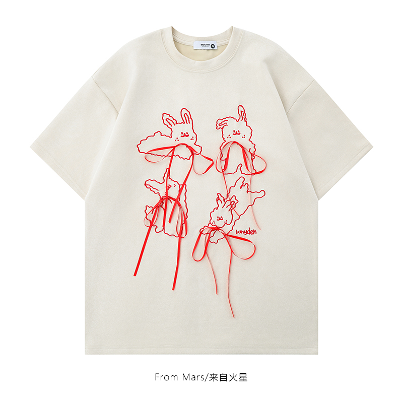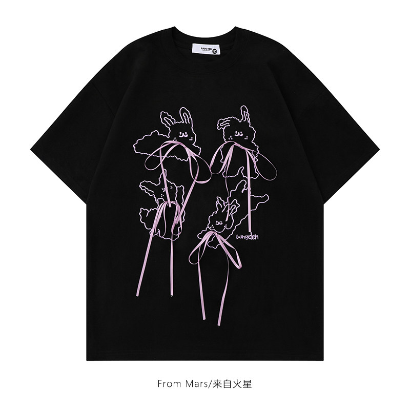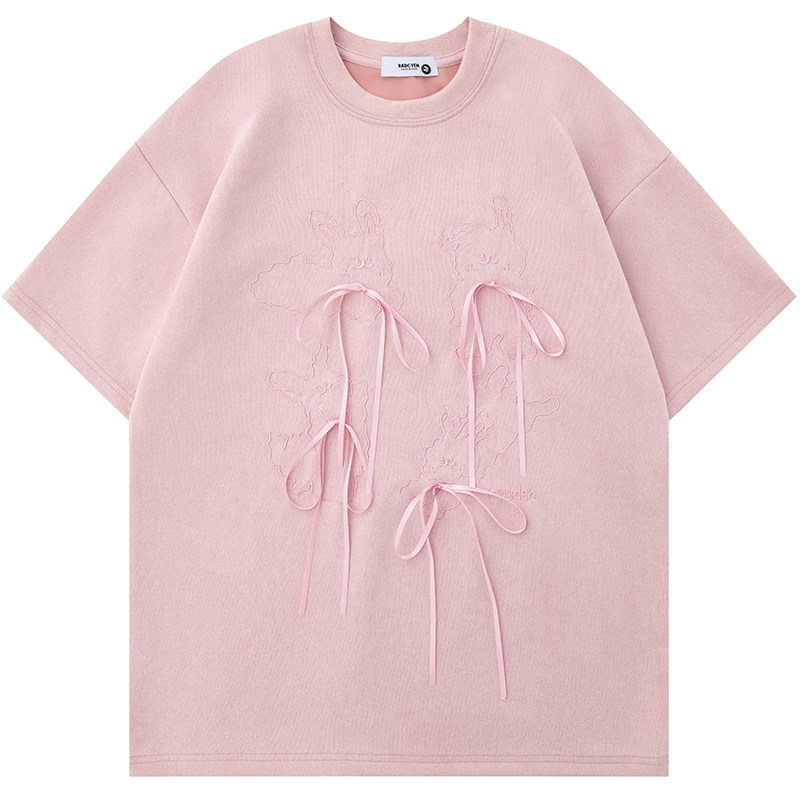 📚 From Mars 解不开的心结 日系甜酷设计感蝴蝶结宽松短袖T恤男女bf