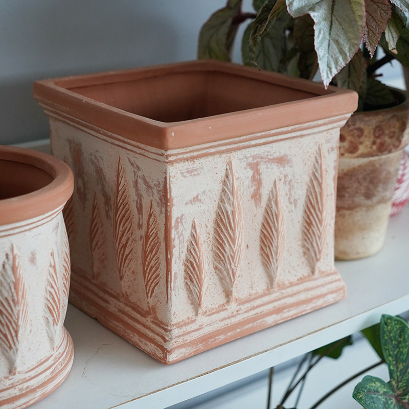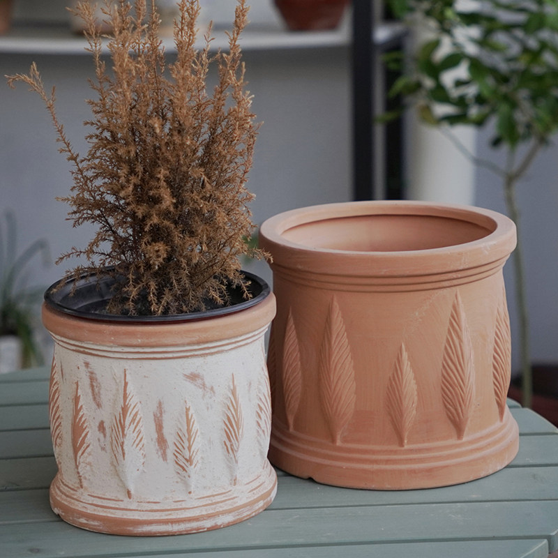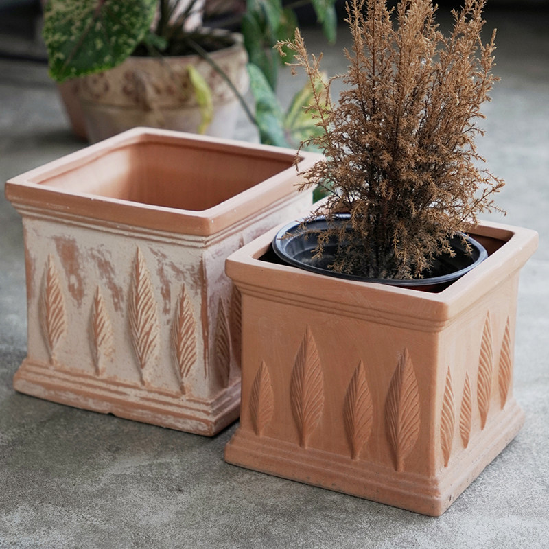 📚 红陶花盆手工做旧帝罗马陶盆方型粗陶盆透气户外庭院陶土盆大口径
