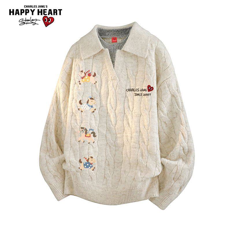 💥冬日新宠!查尔斯桃心翻领假两件毛衣,男女的冬季新宠👕