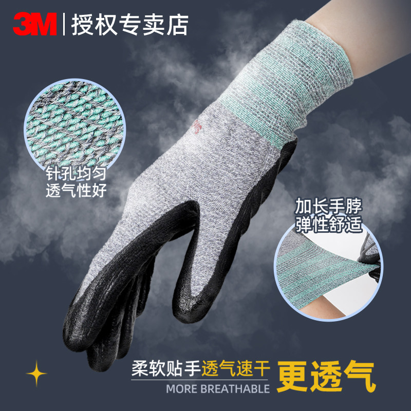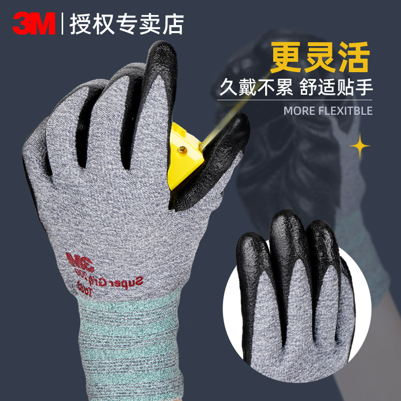 📚 3M手套劳保工作耐磨建筑工地劳动搬运专用丁腈塑胶浸胶橡胶手套