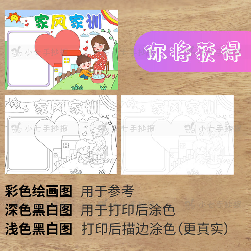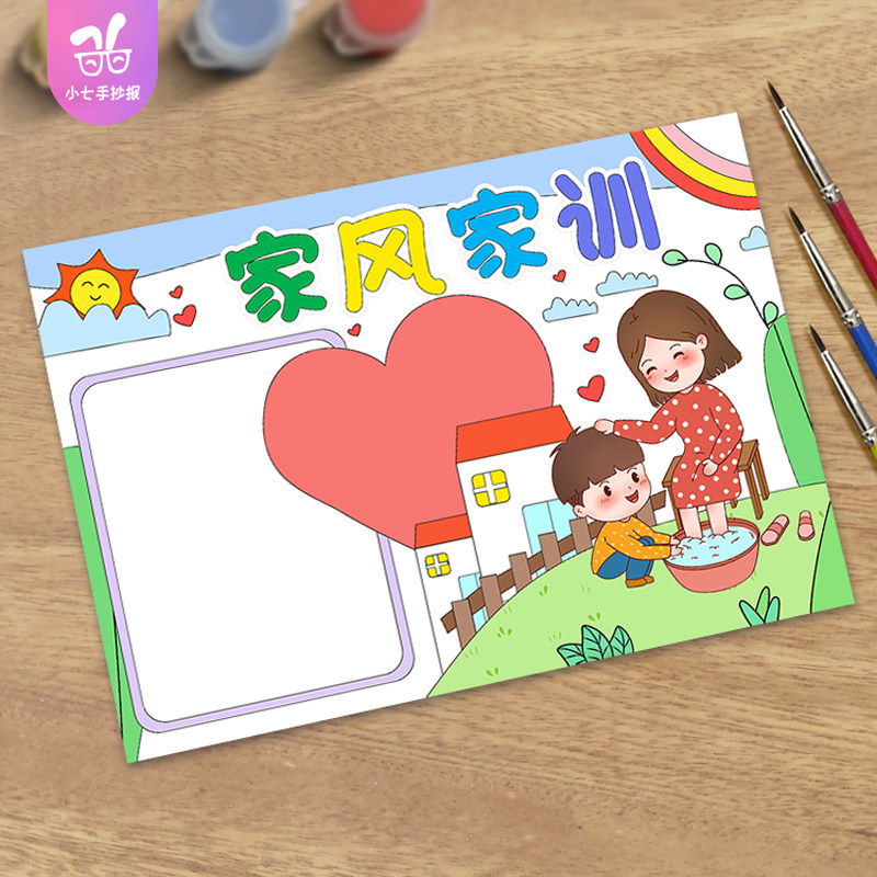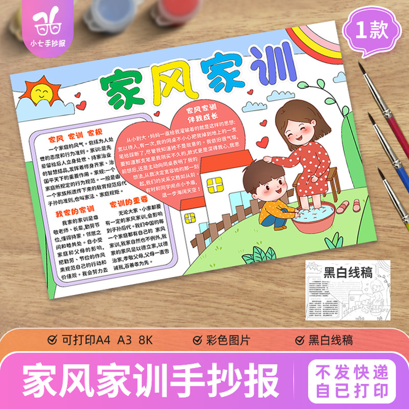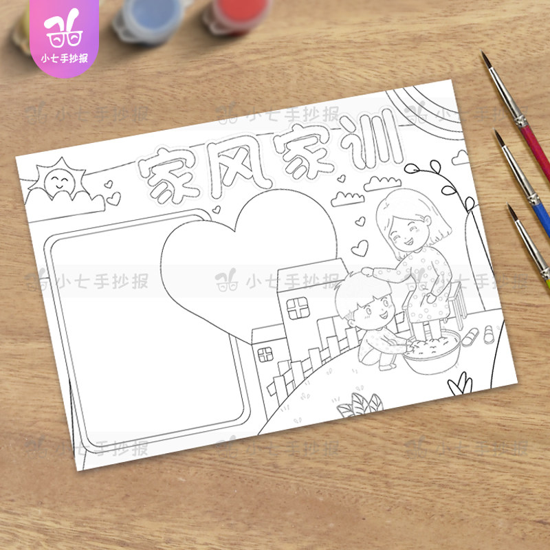 📚 家风家训手抄报电子模板小学生树家风传家训弘扬家规打印线稿