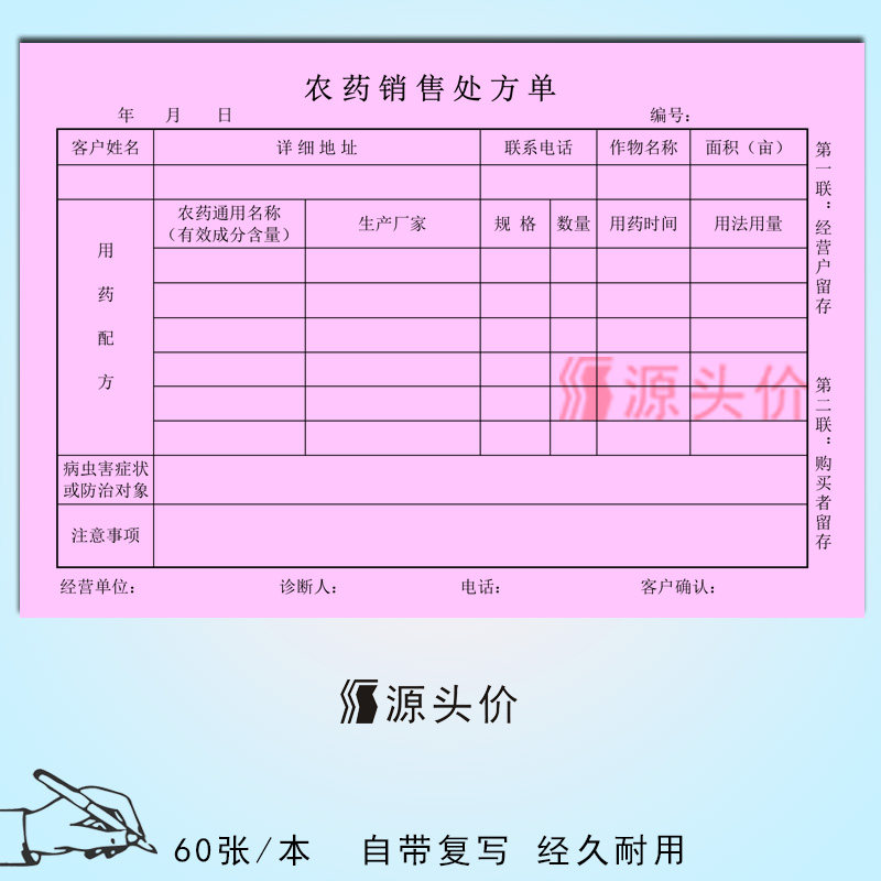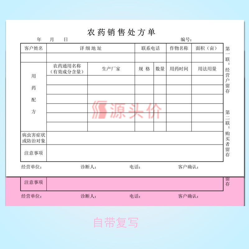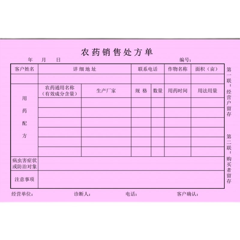 📚 农药销售处方单2联经营购买留存诊断单位客户成分用药防治病虫害