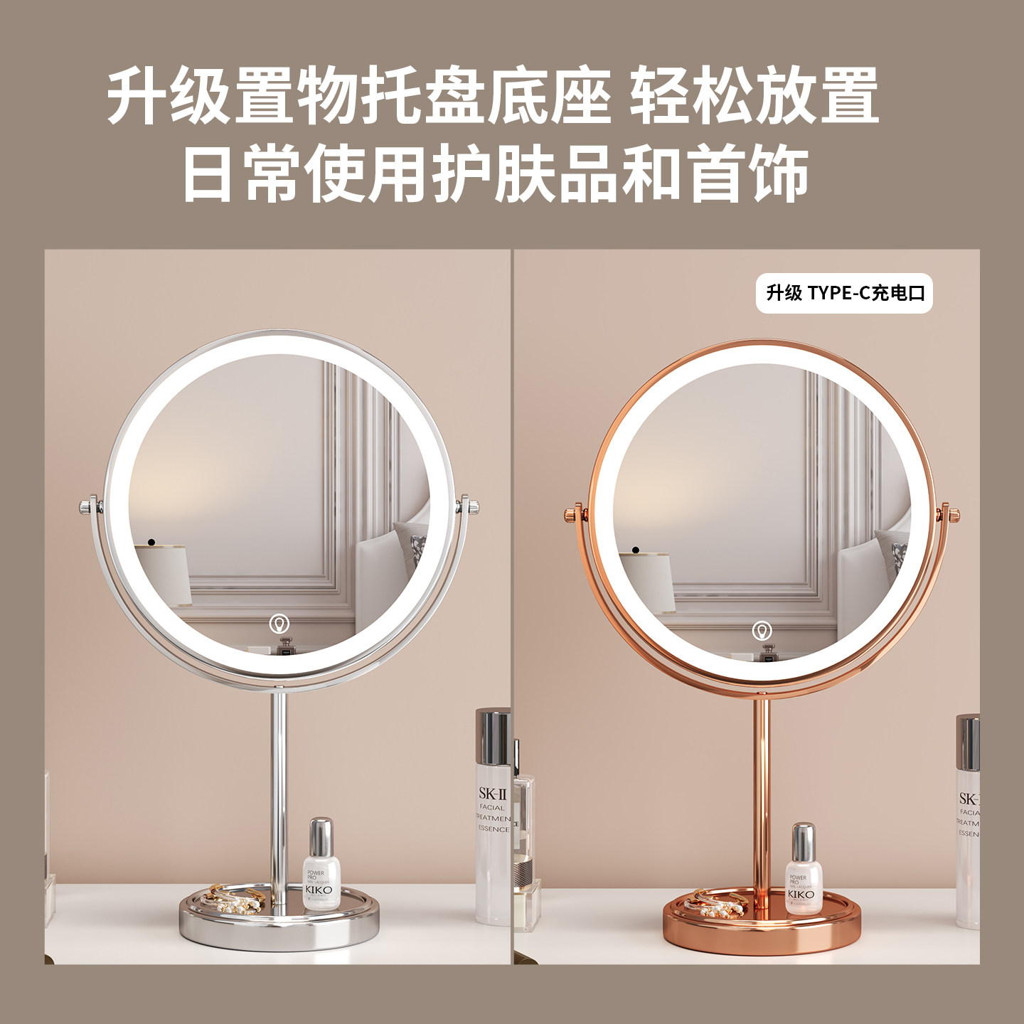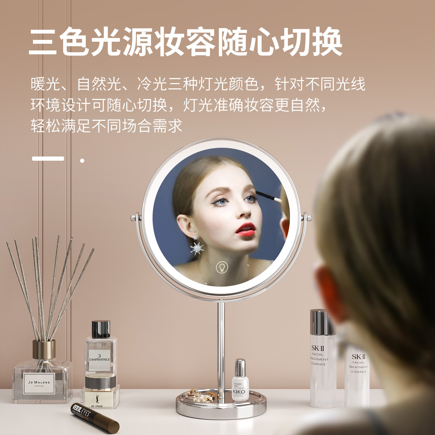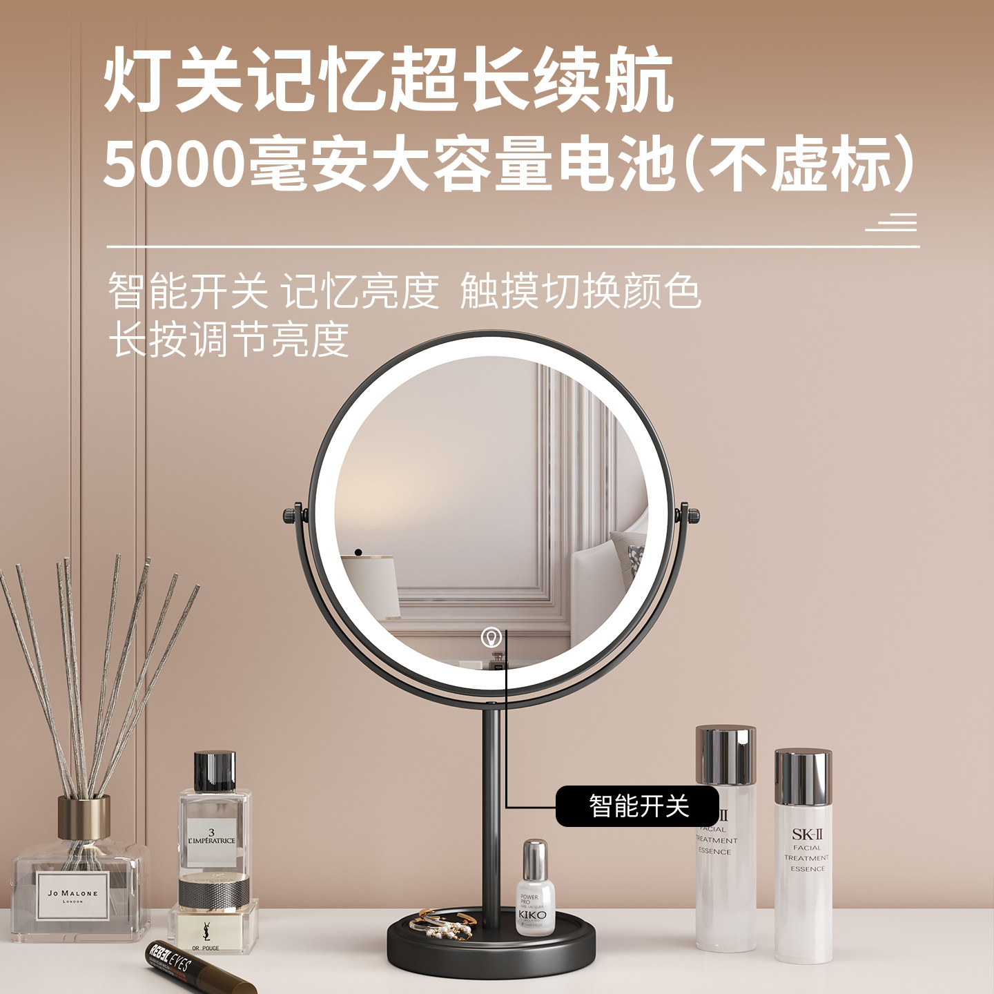 📚 桌面化妆镜大号10英寸LED高清双面带灯镜子台式3倍10倍放大美容镜
