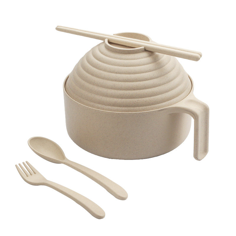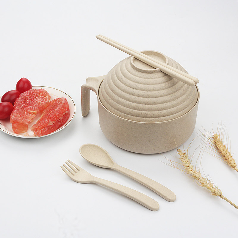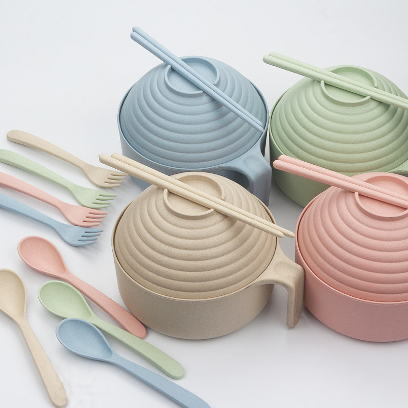 📚 家用麦秆餐具碗筷套装学生宿舍带盖大碗日式方便面泡面碗神器