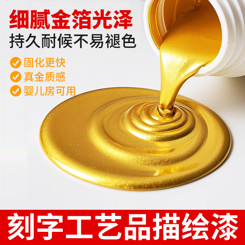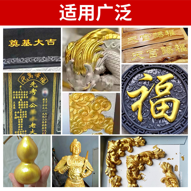 📚 金粉漆金色油漆石头专用描金漆不掉色墓碑漆笔碑文石碑描字金箔漆