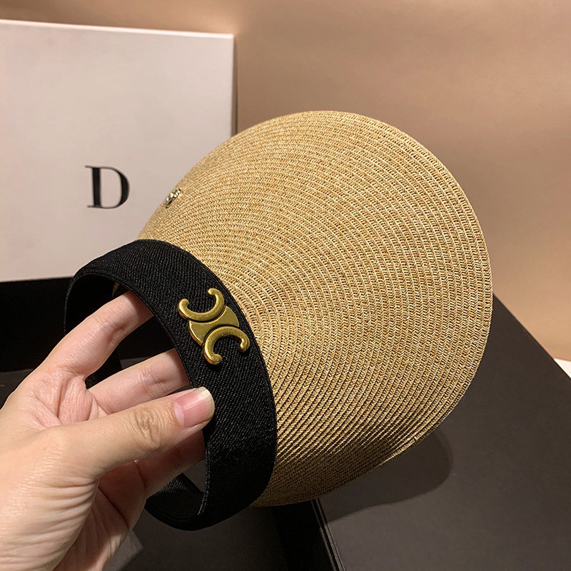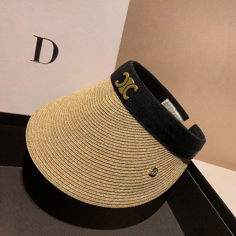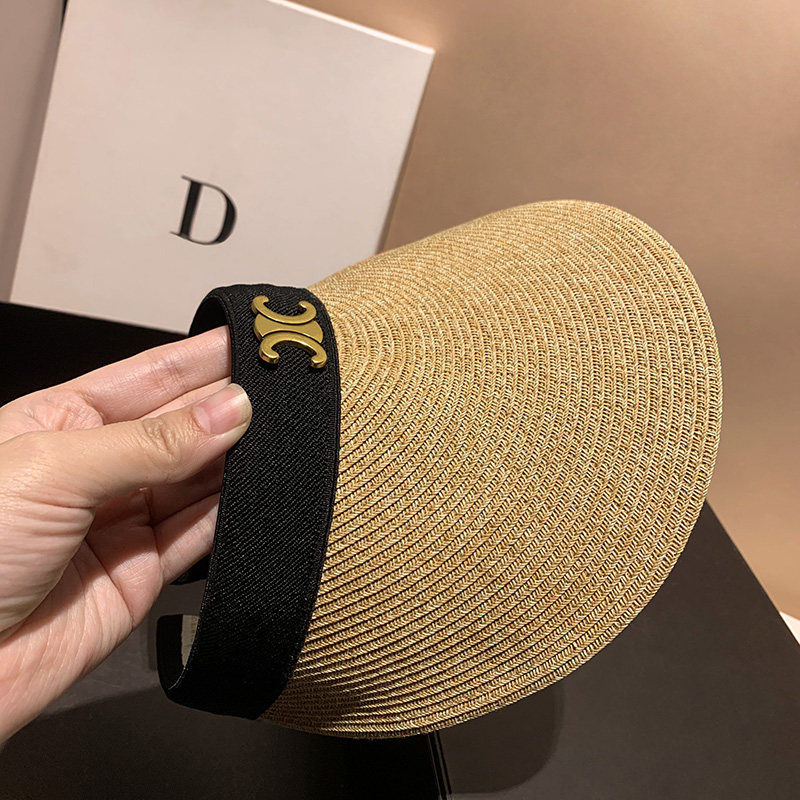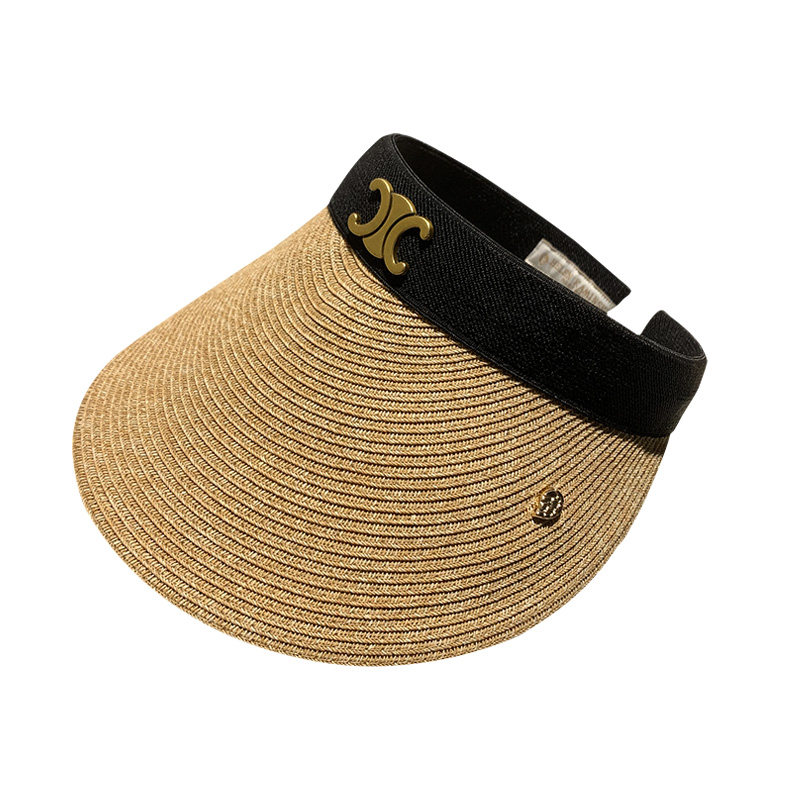 📚 金属字母凯旋门草帽女夏季帽子草编空顶遮阳帽防紫外线沙滩太阳帽