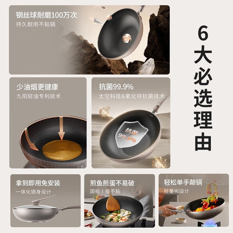 📚 九阳耐磨王不粘锅炒锅平底锅家用聚油炒菜锅电磁炉燃气灶煤气专用