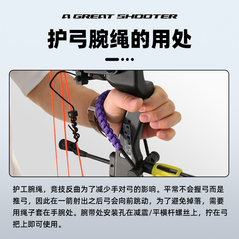 📚 AGS射手两用复合弓腕绳射箭反曲护弓绳轮滑编织麻花腕带腕绳尼龙