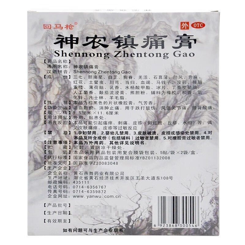📚 【回马枪】神农镇痛膏 9.5cm*11.6cm*10贴活血散瘀消肿止痛