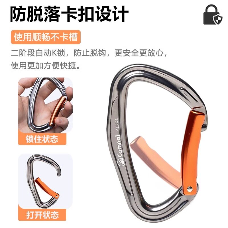📚 梨形锁扣直门弯门快挂攀岩挂钩攀登训练扁带锚点高空安全扣钩主锁