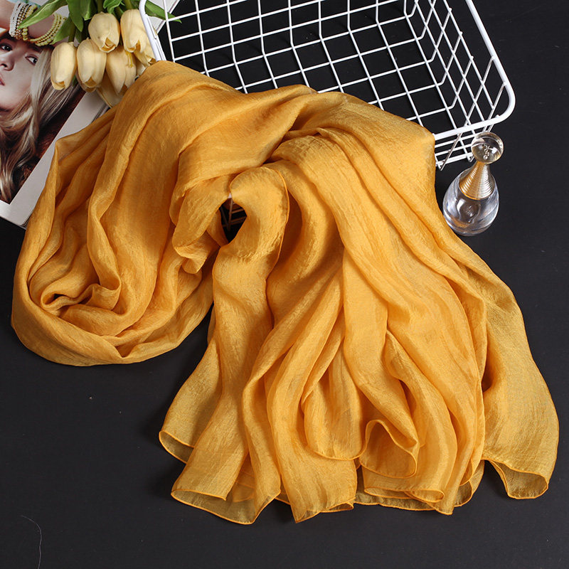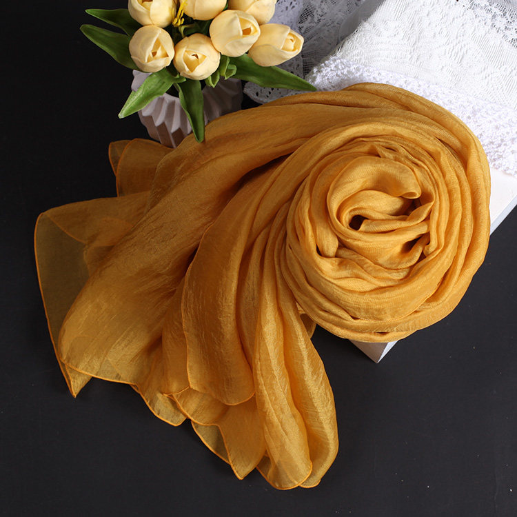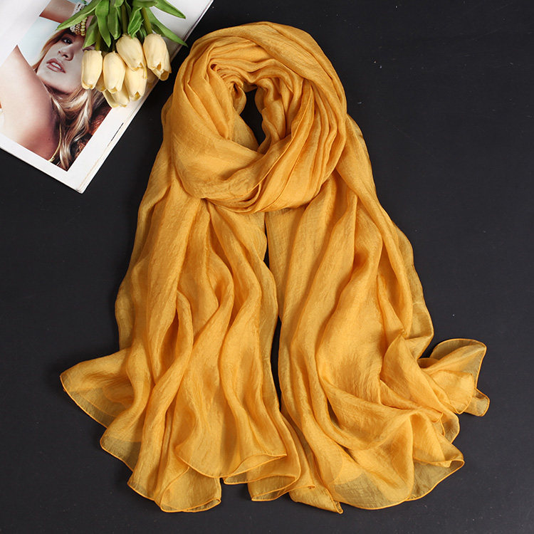 📚 2025新款正品高级感围巾秋冬季百搭保暖真丝丝巾姜黄色妈妈披肩女