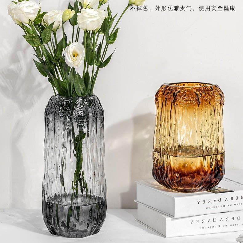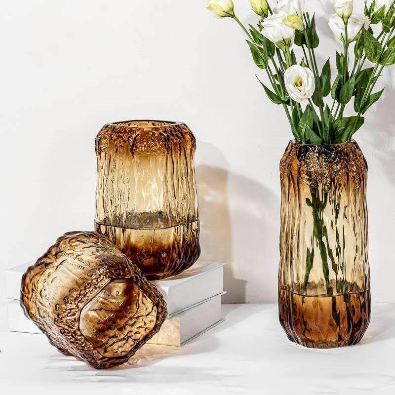 📚 树根渐变玻璃花瓶透明水培鲜花插花器样板间客厅餐桌装饰品摆件定
