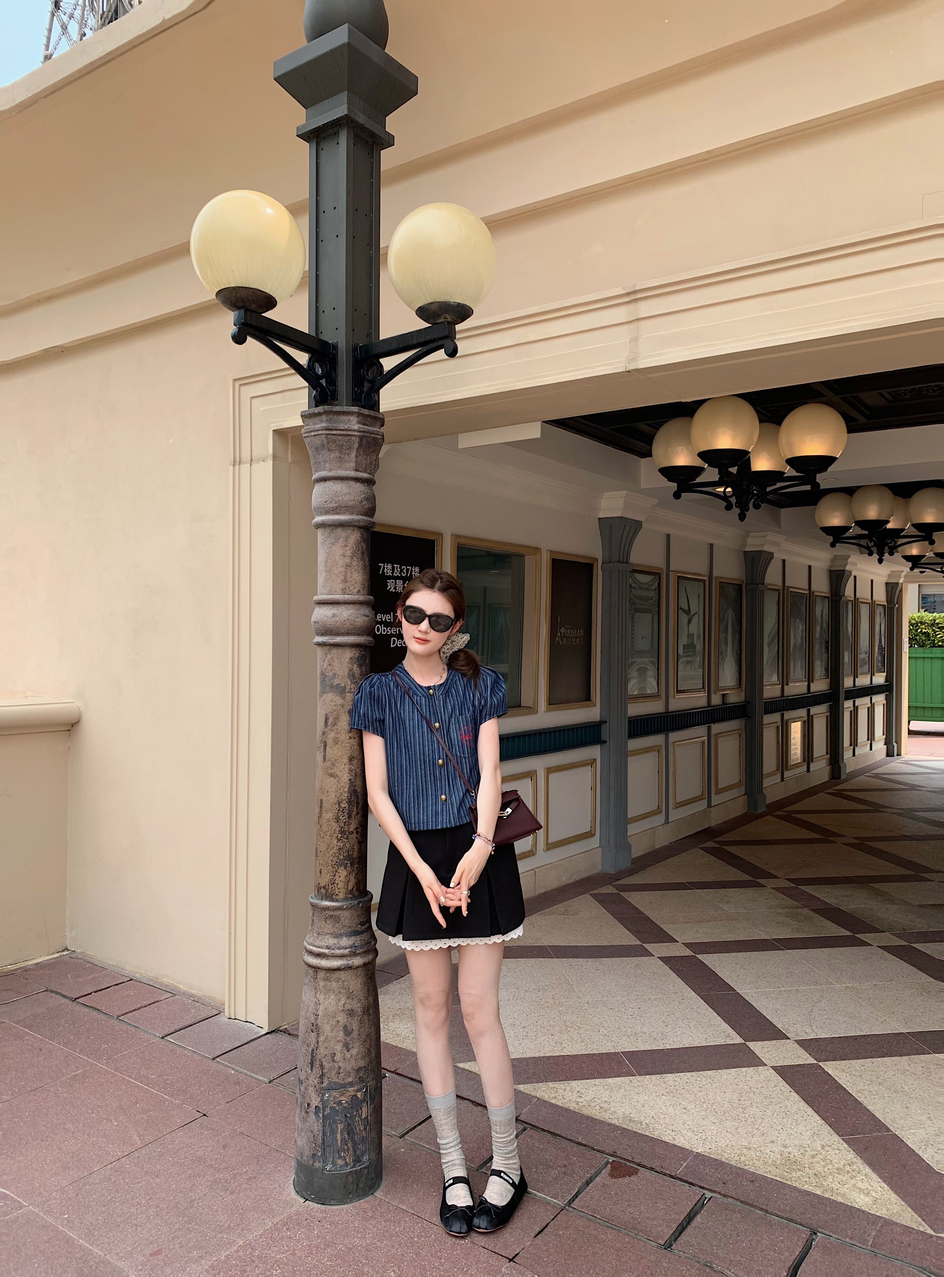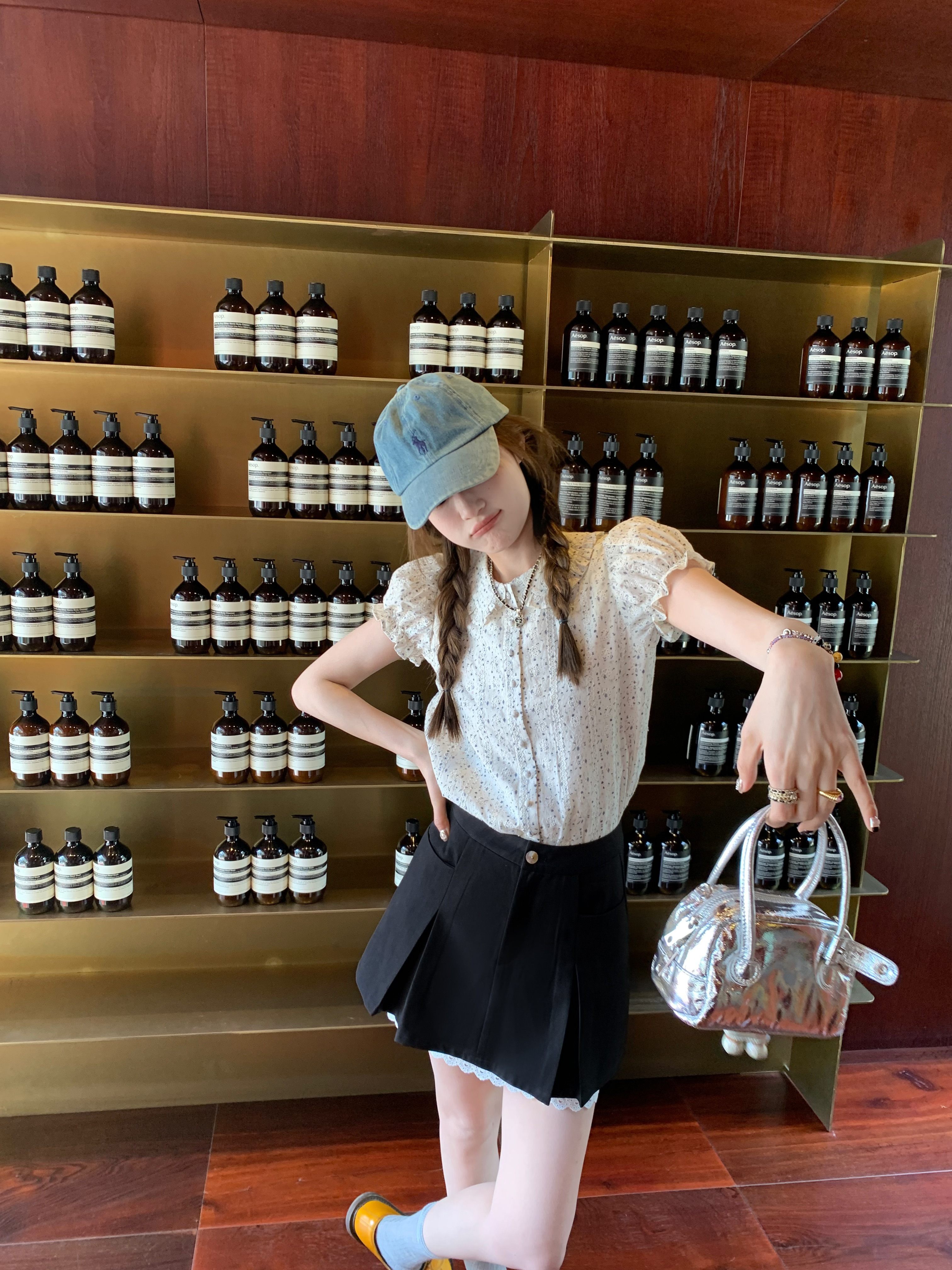📚 aaaaxbbb 费城春假 两件套套组压褶A字裙叠穿口袋花边黑色短裙夏
