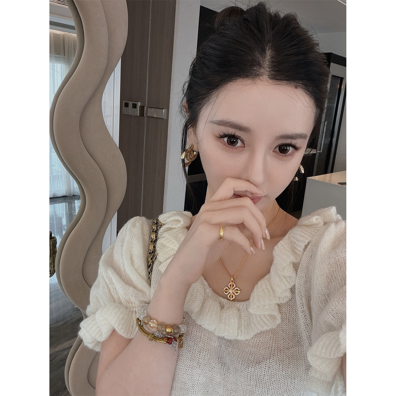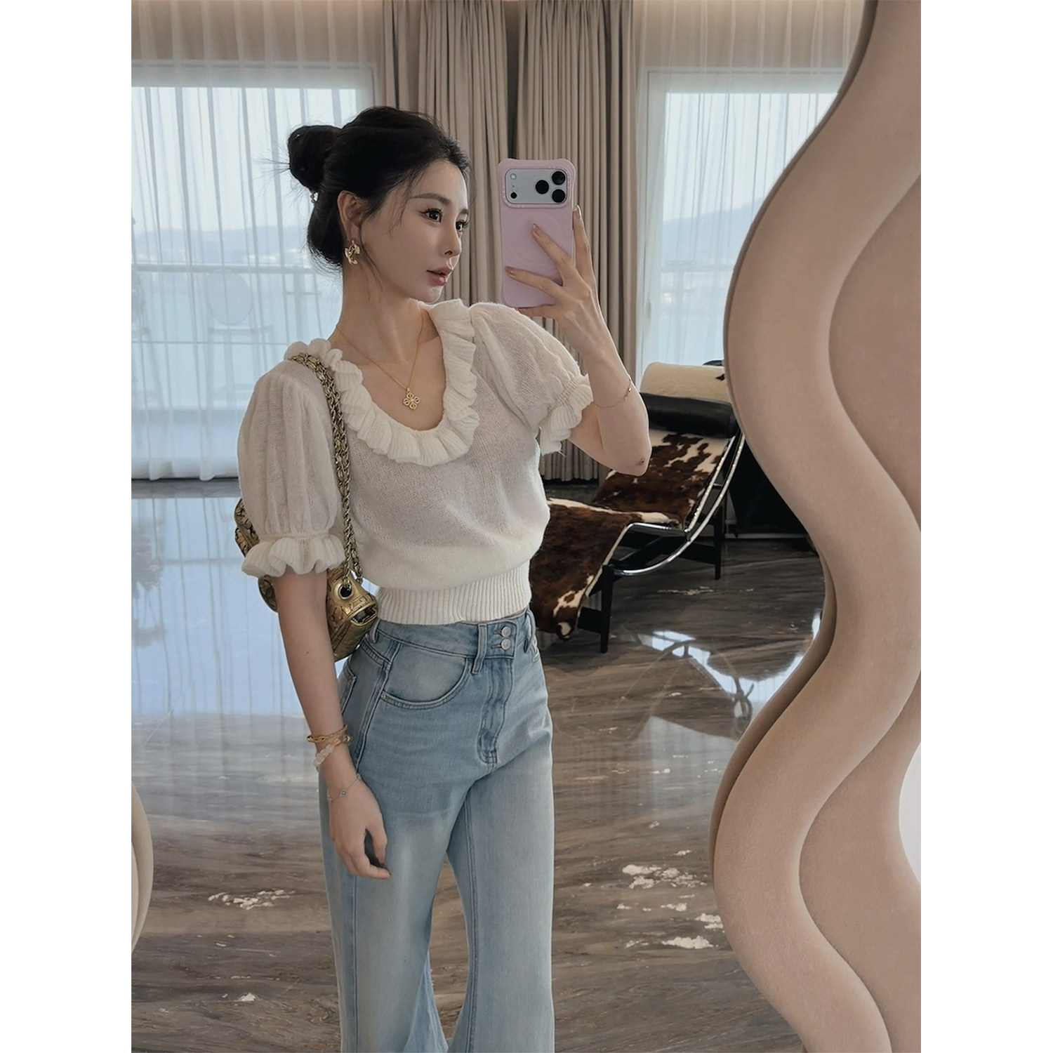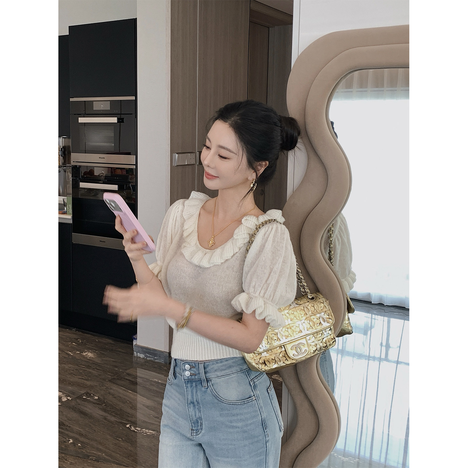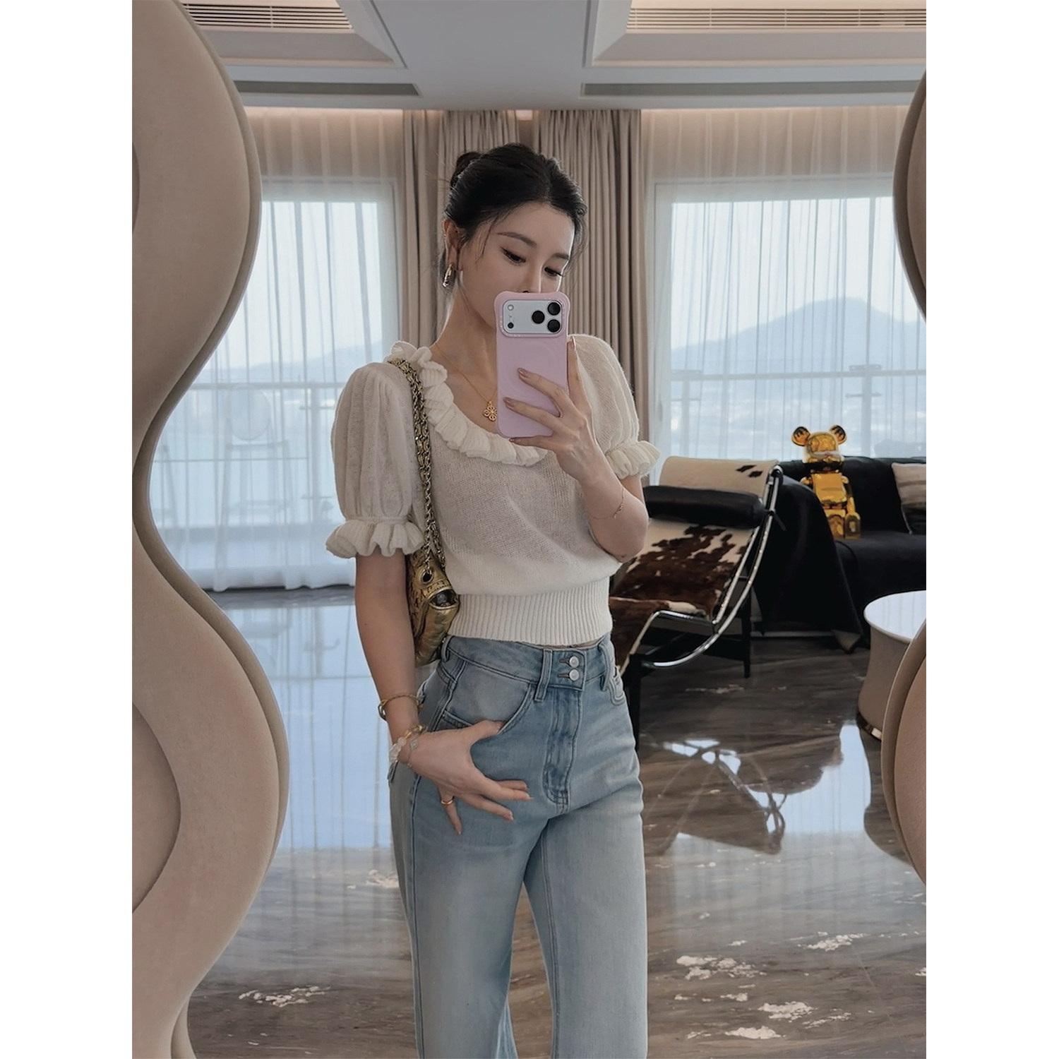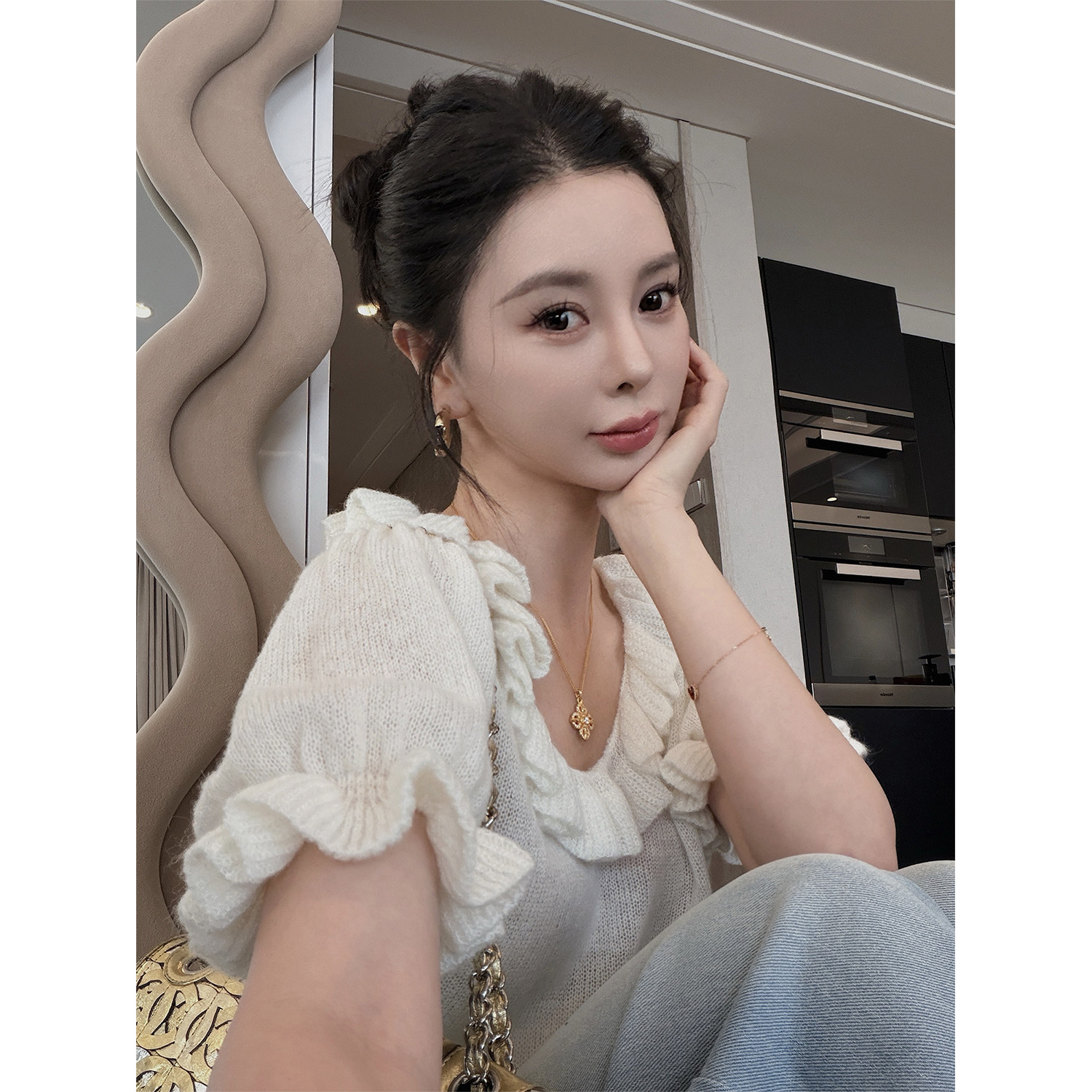 📚 3/13 10AM MINI STUDIO徐琳「午后花园」u型领泡泡袖马海毛毛衣