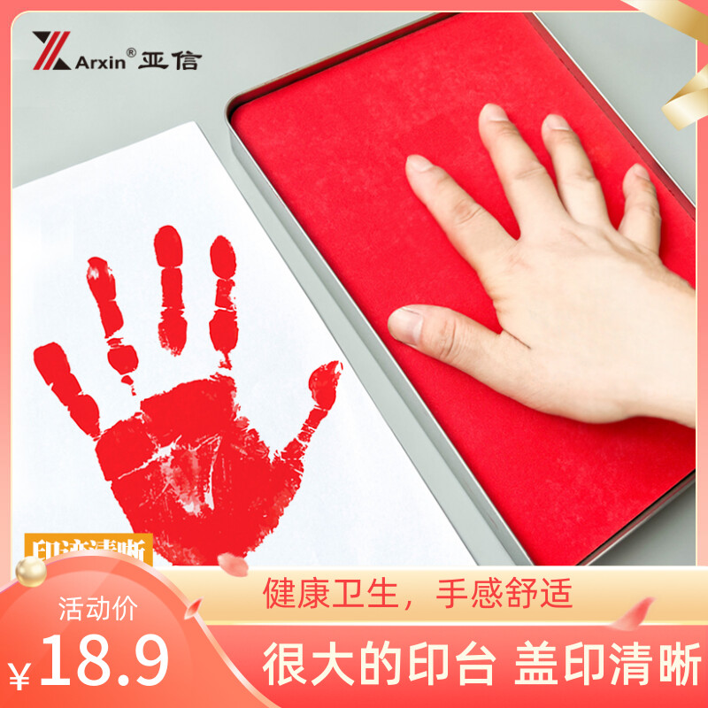 📚 亚信特大号印台手掌印脚印加大印泥红色朱砂印泥方形超大号手掌画印泥印大印章空白12色可选活动庆典专用印尼
