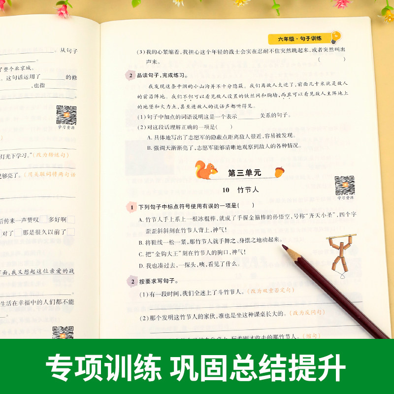 📚 句子训练专项练习六年级上册下册语文同步练习册人教版修辞手法 小学6仿写句子强化扩充改写扩写排序关联词陈述句改反问句修改病句