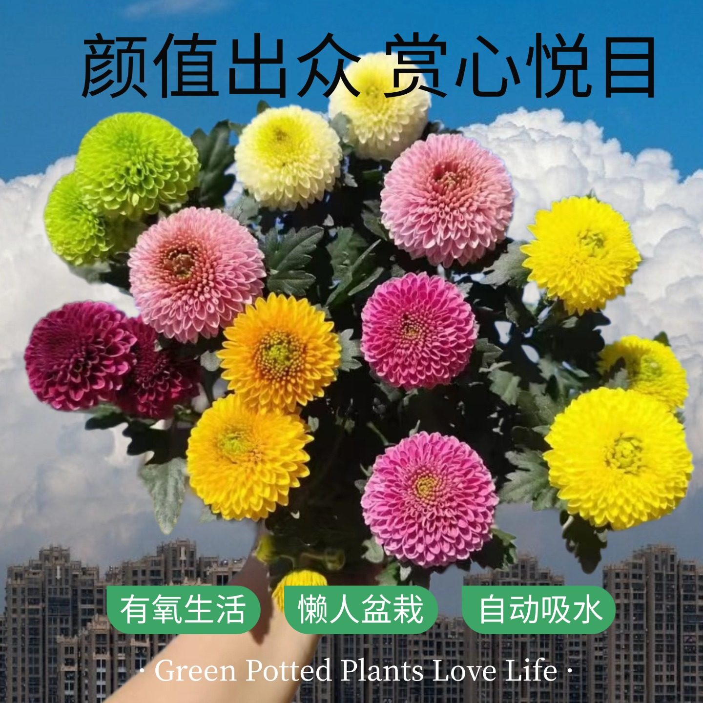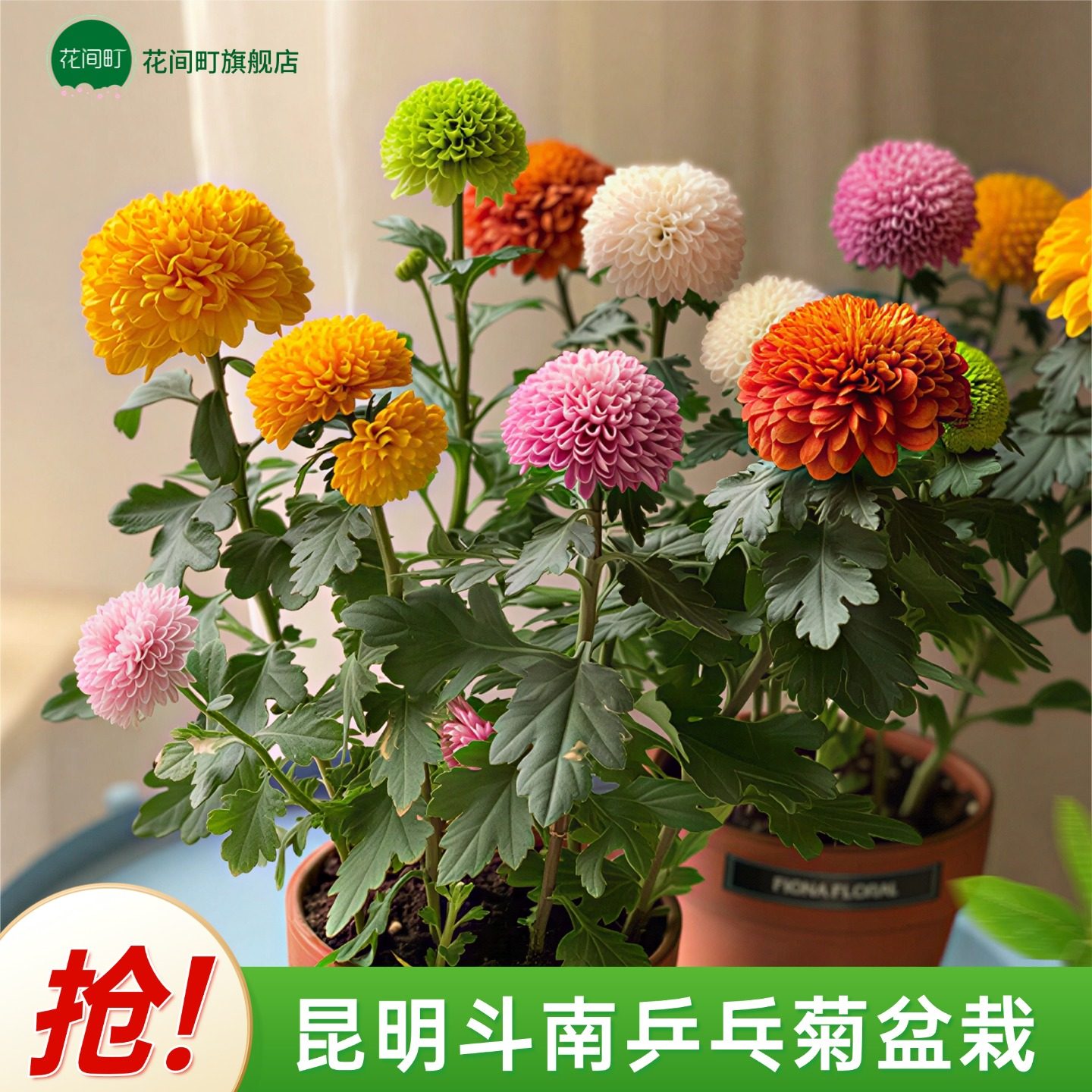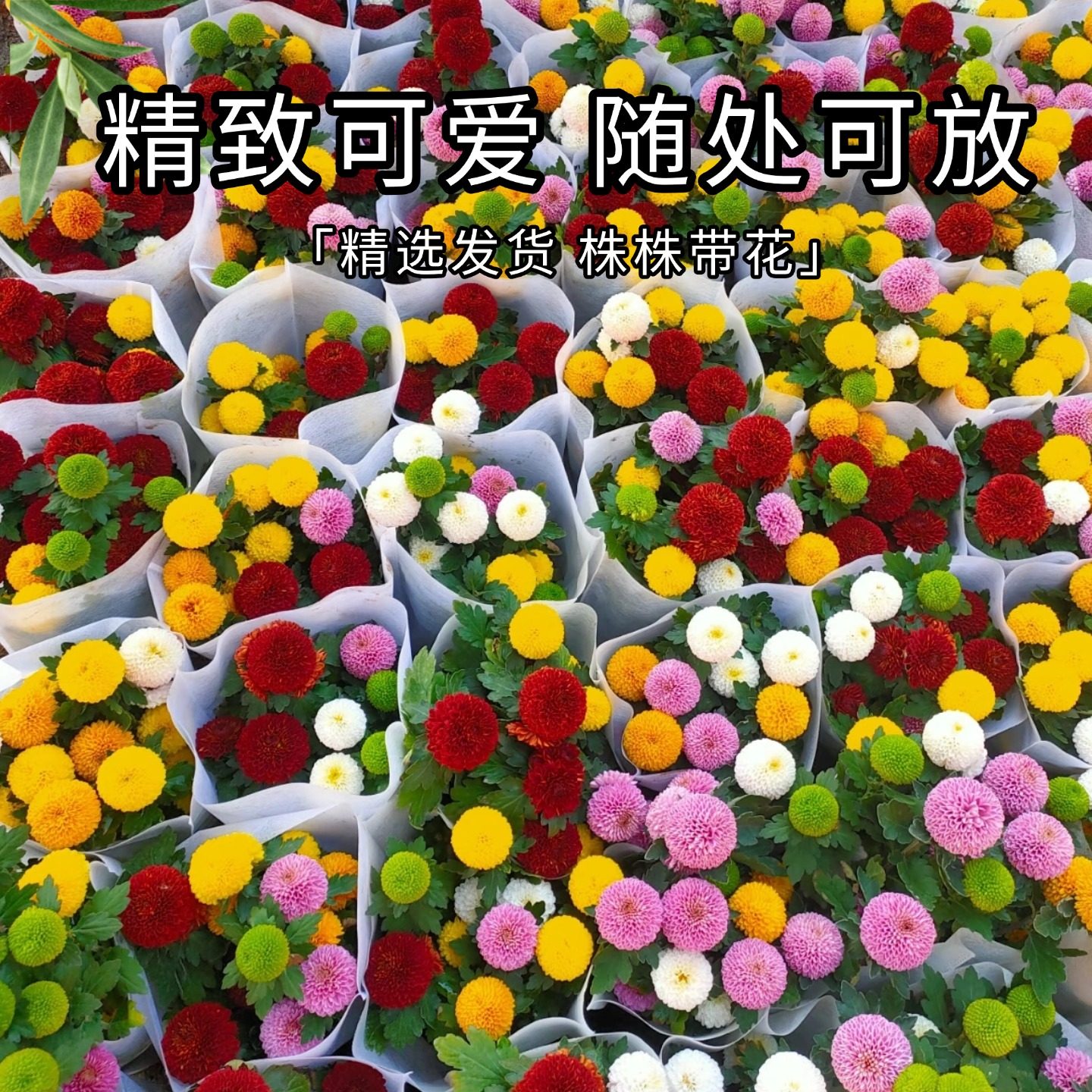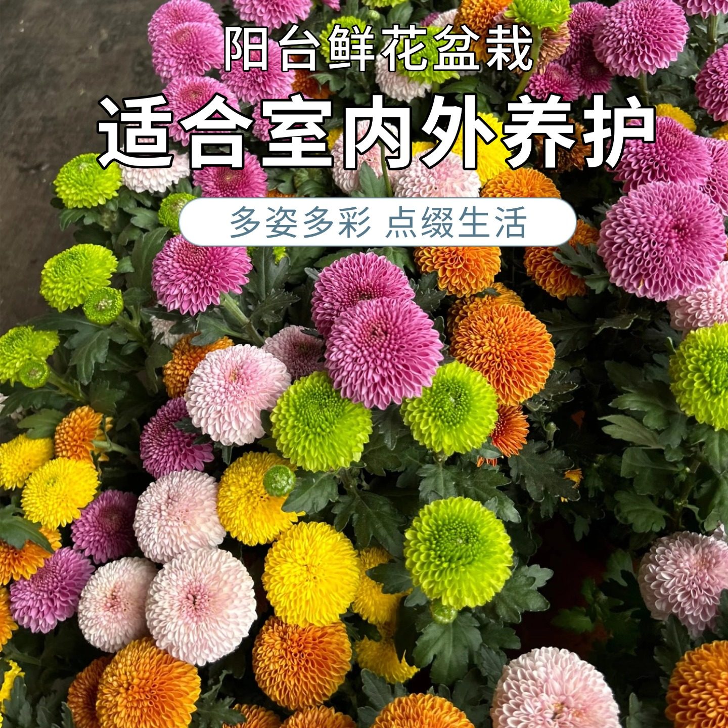 📚 云南七彩混色乒乓菊盆栽花盆菊花带花苞多季开花好养室内阳台花卉