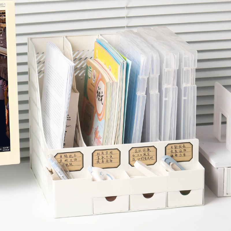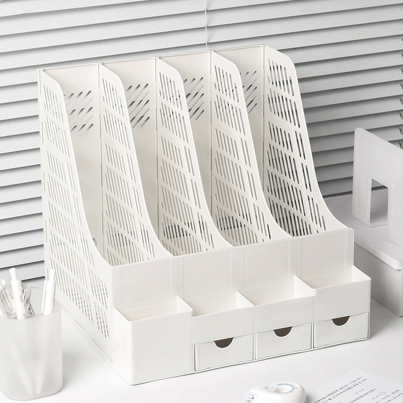 📚 抽屉式笔筒桌面书立架a4文件栏收纳盒文件夹框档案资料置物文件架