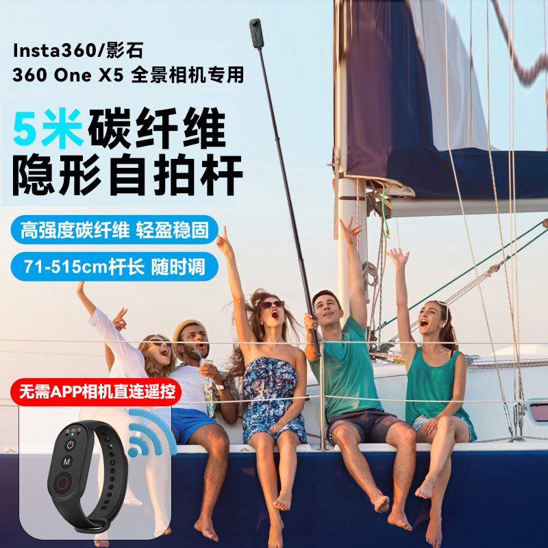 📚 适用Insta影石360One X5全景相机手持延长杆配件滑雪无人机拍摄支架影石X4/X3无线蓝牙遥控360全景隐形自拍杆