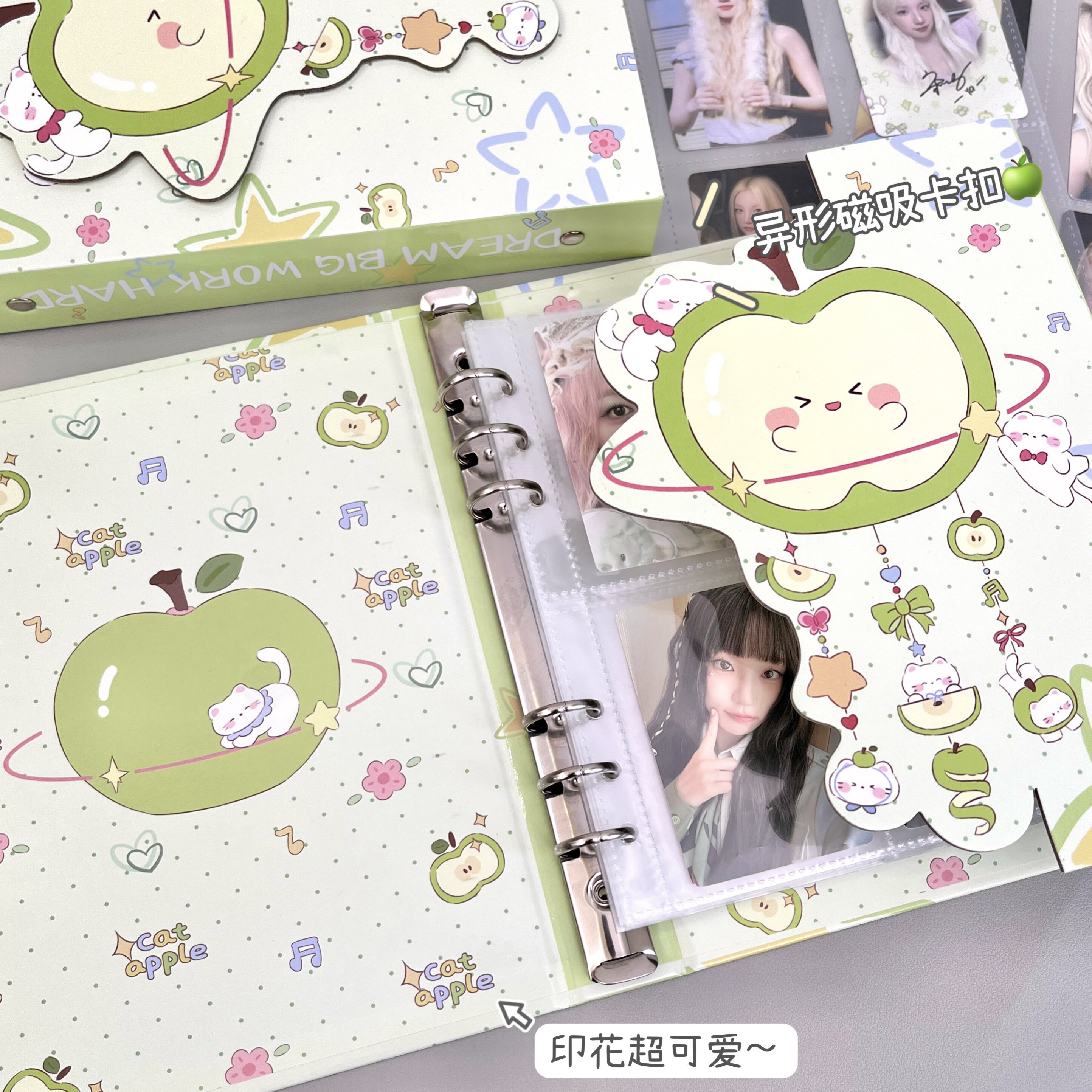 📚 可爱卡通青苹果风铃A5异形卡册本相册收纳册日系甜美纪念册高颜值明星硬壳四宫格活页收纳小卡纪念册拍立得册