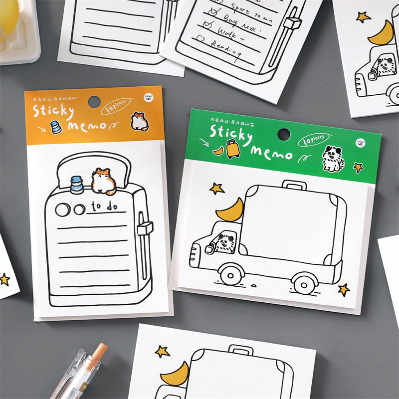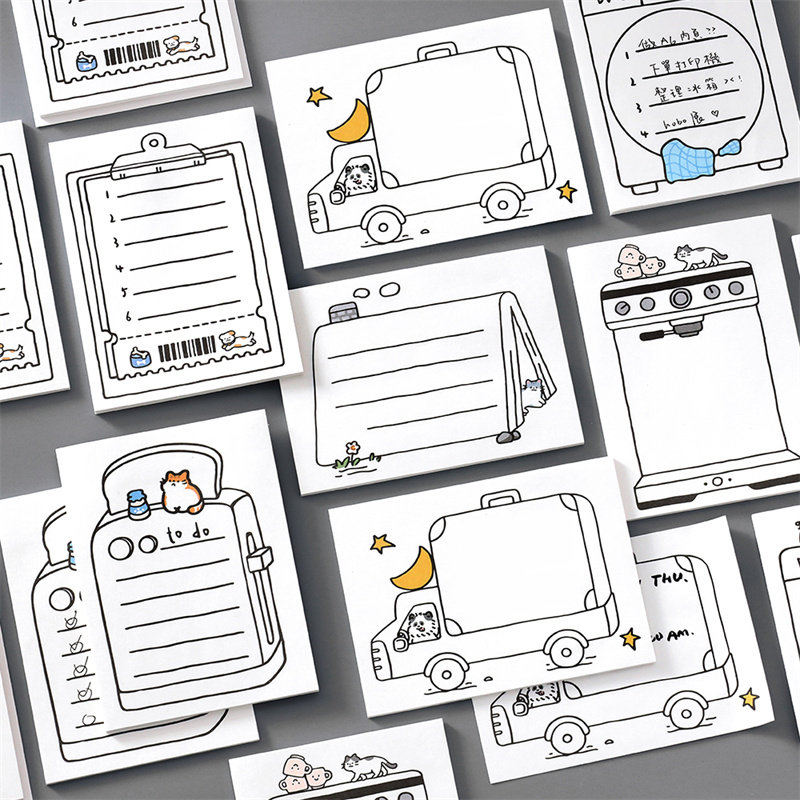 📚 可爱日记韩系卡通异形便利贴N次贴 ins复古简约线条手绘插画办公留言手帐装饰素材纸学生计划清单记事小本子
