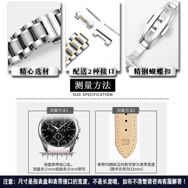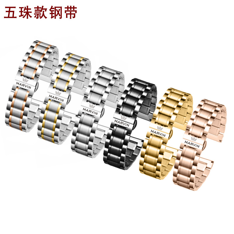 📚 摩纹marvin表带钢带 实心不锈钢男女款金属表链防水蝴蝶扣20 21mm
