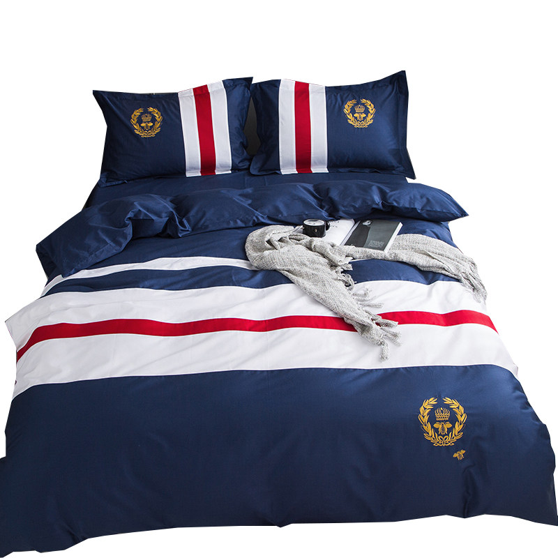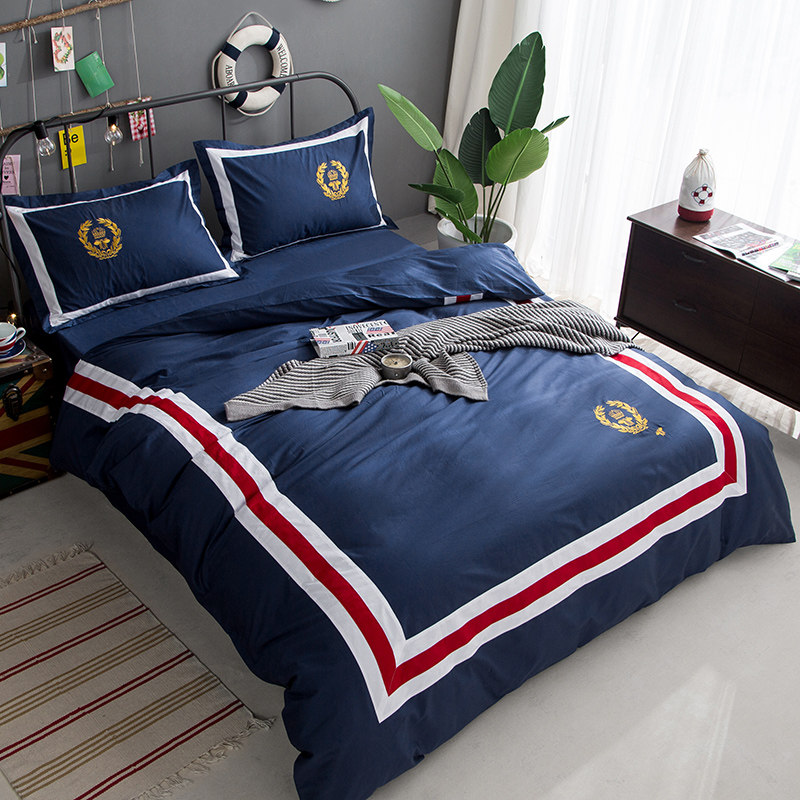 📚 儿童纯棉四件套英伦风床单式床笠地中海风格被套简约男孩床上用品