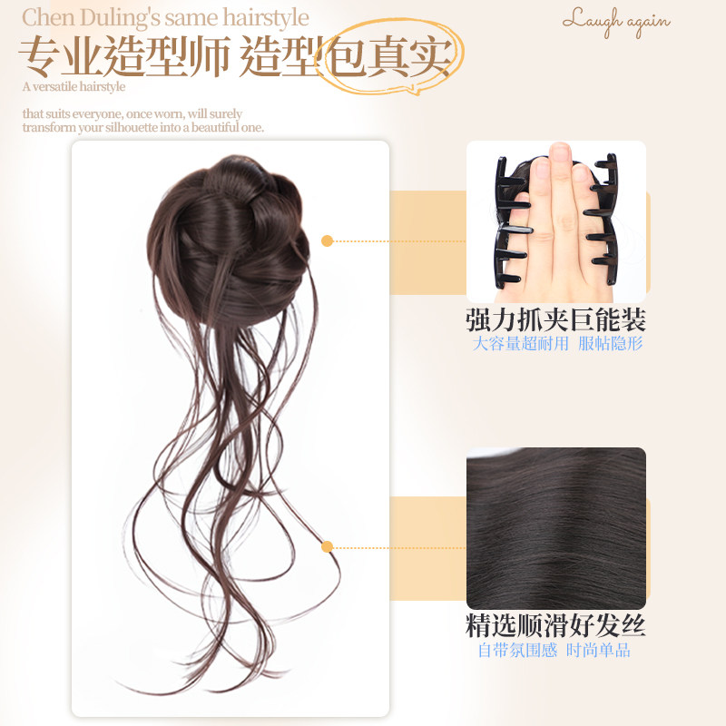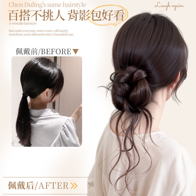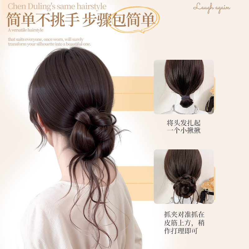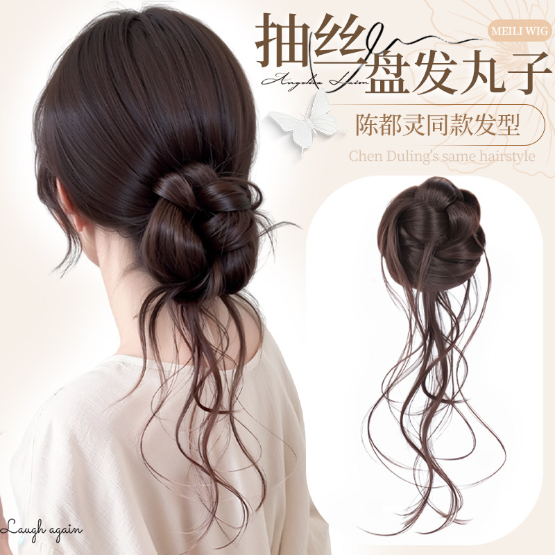 📚 丸子头假发女慵懒感抽丝盘发花苞头自然仿真发蓬松后脑勺假发抓夹