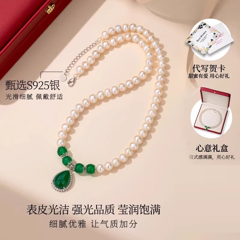 📚 玉髓珍珠项链纯银吊坠2025新款高档实用首饰母亲节礼物送妈妈长辈