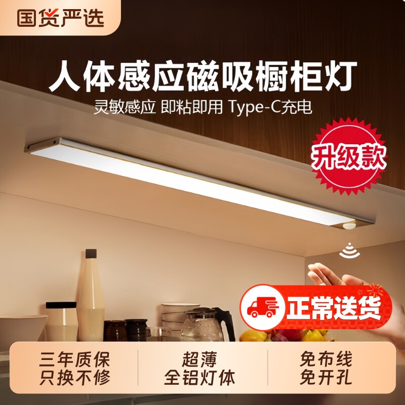 📚 人体感应LED灯带充电式无线磁吸自粘灯条夜间玄关过道展示柜厨房