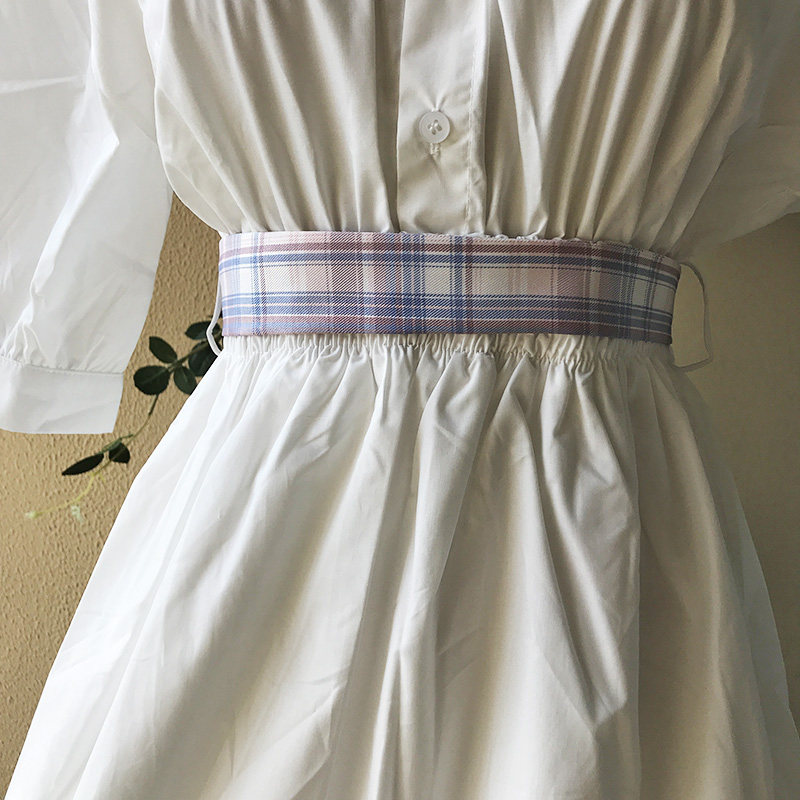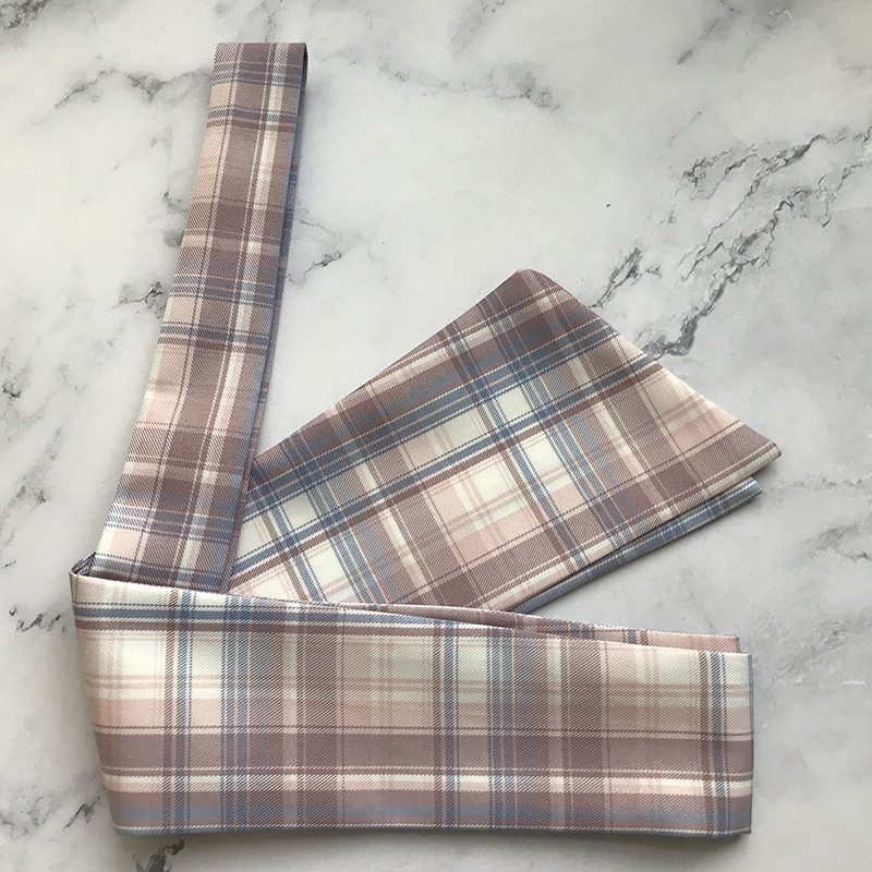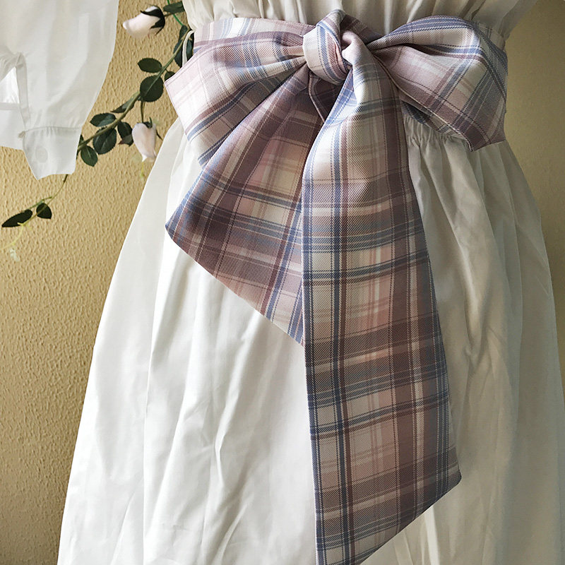 📚 灰粉紫 JK格子腰带可绑领结 不规则格纹 绑蝴蝶结 甜美