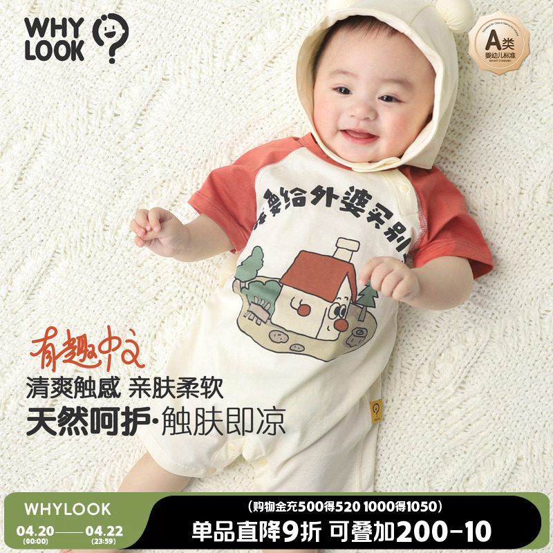 📚 WHYLOOK 婴儿连体衣短袖夏季薄款宝宝衣服凉感冰氧棉外出爬服中文