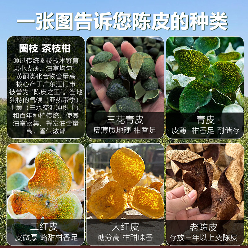 📚 新货陈皮2025年大红皮圈枝茶枝柑广东江门会陈皮干泡水茶鲜皮橘皮