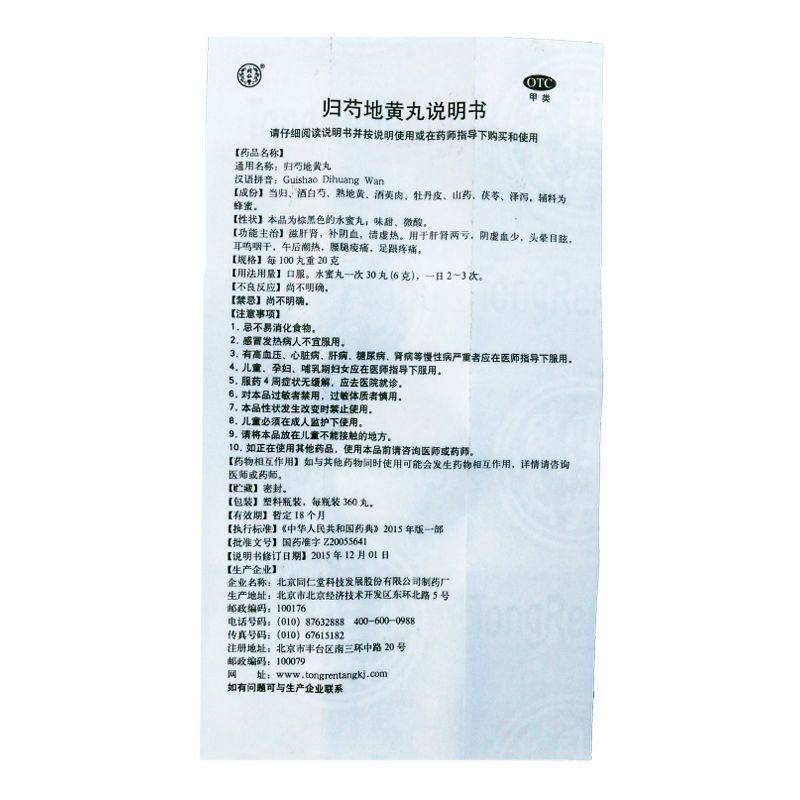 📚 北京同仁堂 归芍地黄丸 360丸 滋肝肾补阴血清虚热
