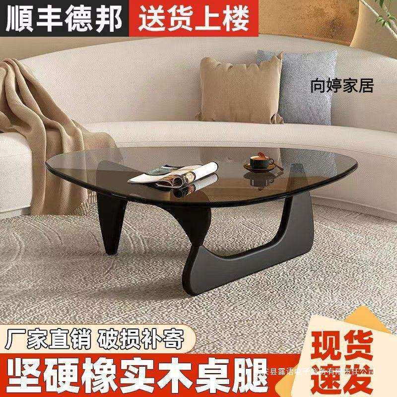 📚 钢化玻璃茶几小户型客厅家用实木极简现代简约野口勇创意圆形茶桌