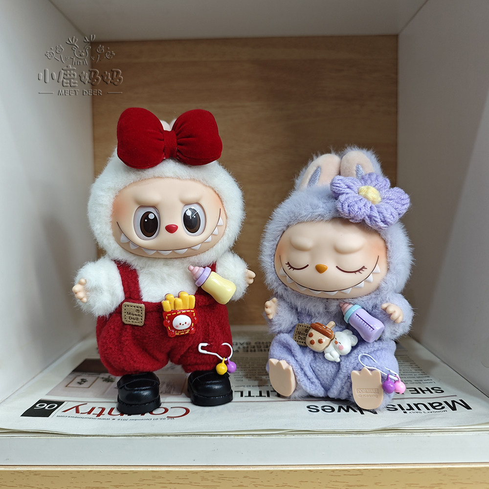 📚 拉布布娃衣17cm公仔美滋滋labubu衣服搪胶挂件一二代坐坐派对着替