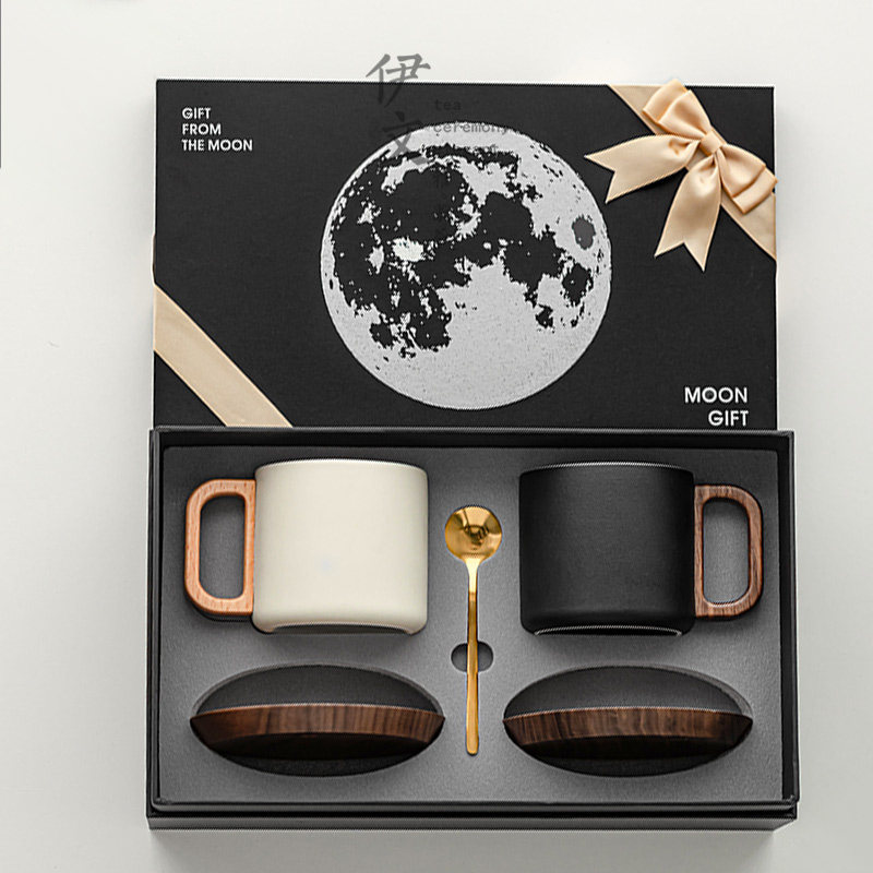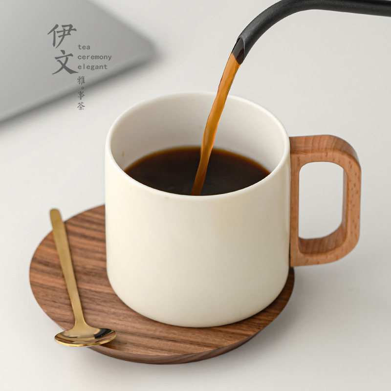 📚 伊文陶瓷半见咖啡杯碟套装高档轻奢马克杯拿铁杯子水杯端午节定制