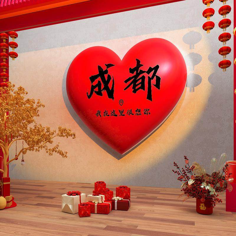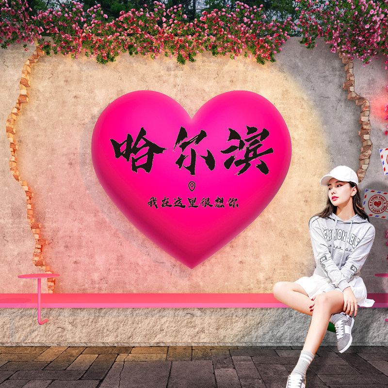 📚 爱心墙贴纸壁画鲜花餐饮饭店装饰网红打卡墙拍照区布置城市名定制